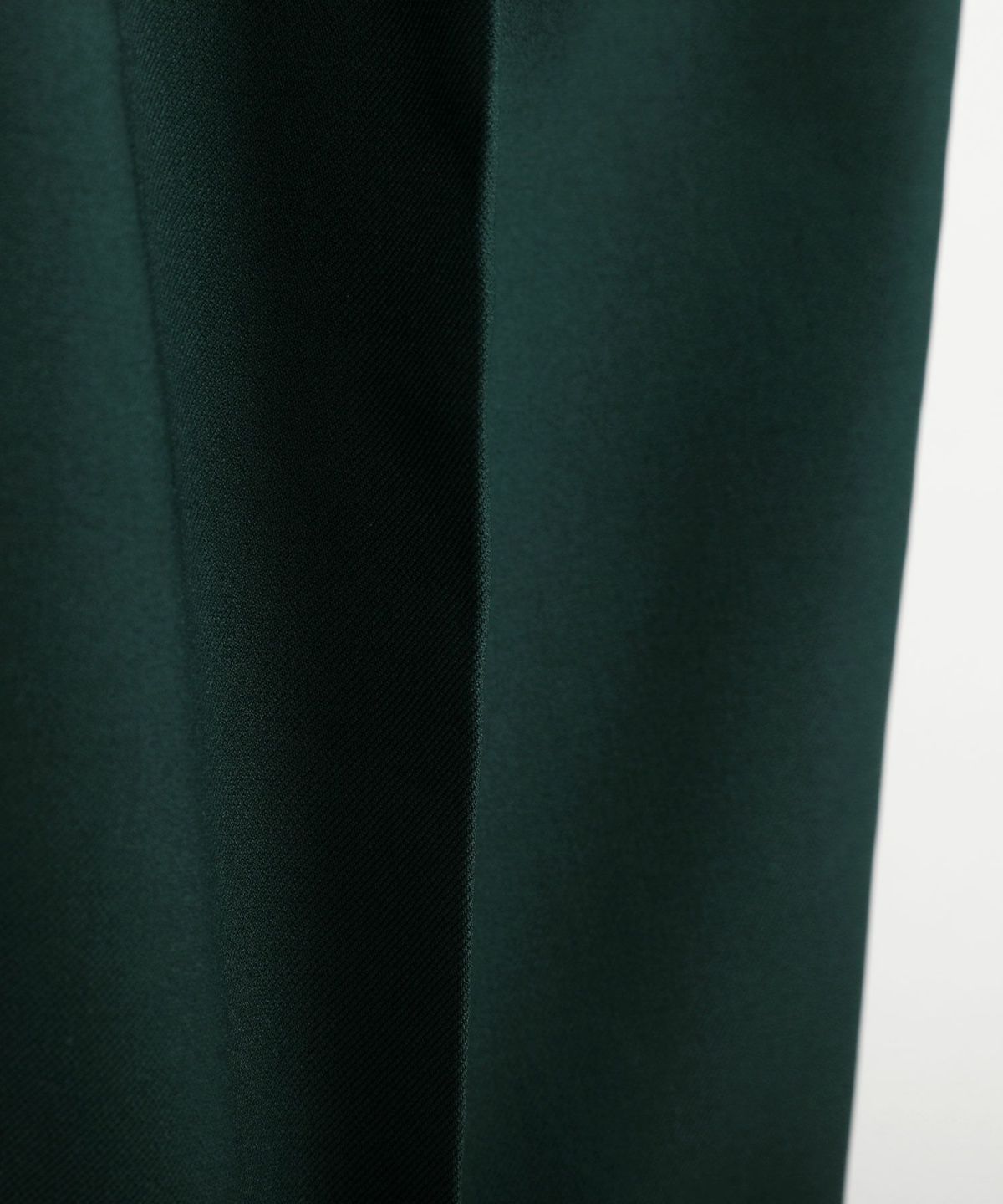 裾に向かって細くなるテーパードラインに、センタープレスを施した一本。ヒップから太股部分にゆとりがあり、程よい抜け感のあるコーデにまとまります。また、腰部分にゴムウエストを採用し、正面からの上品さはキープしつつ締め付け感がないリラックスアイテムに仕上がりました。