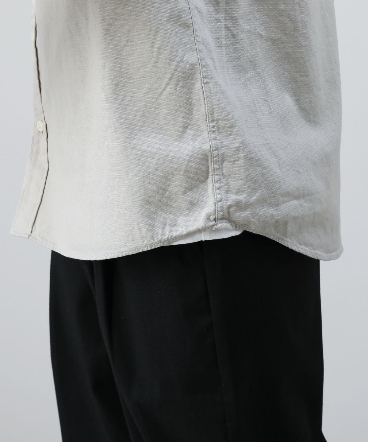 日本製ワンウォッシュバンドカラー長袖テーパードシャツ