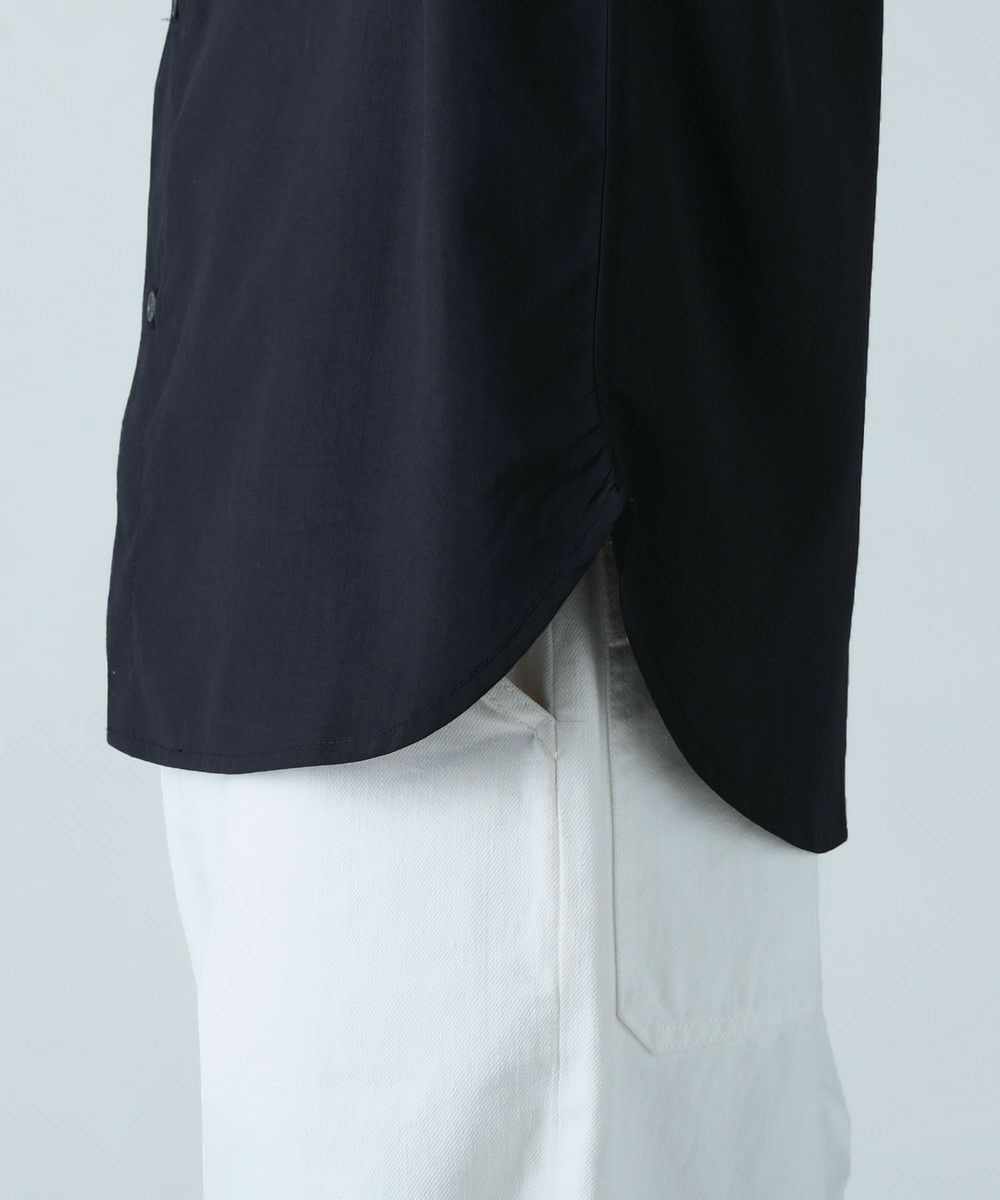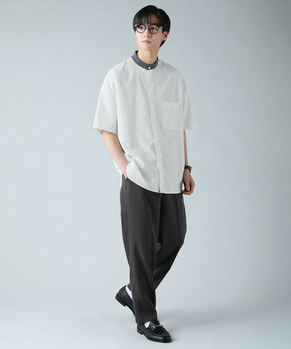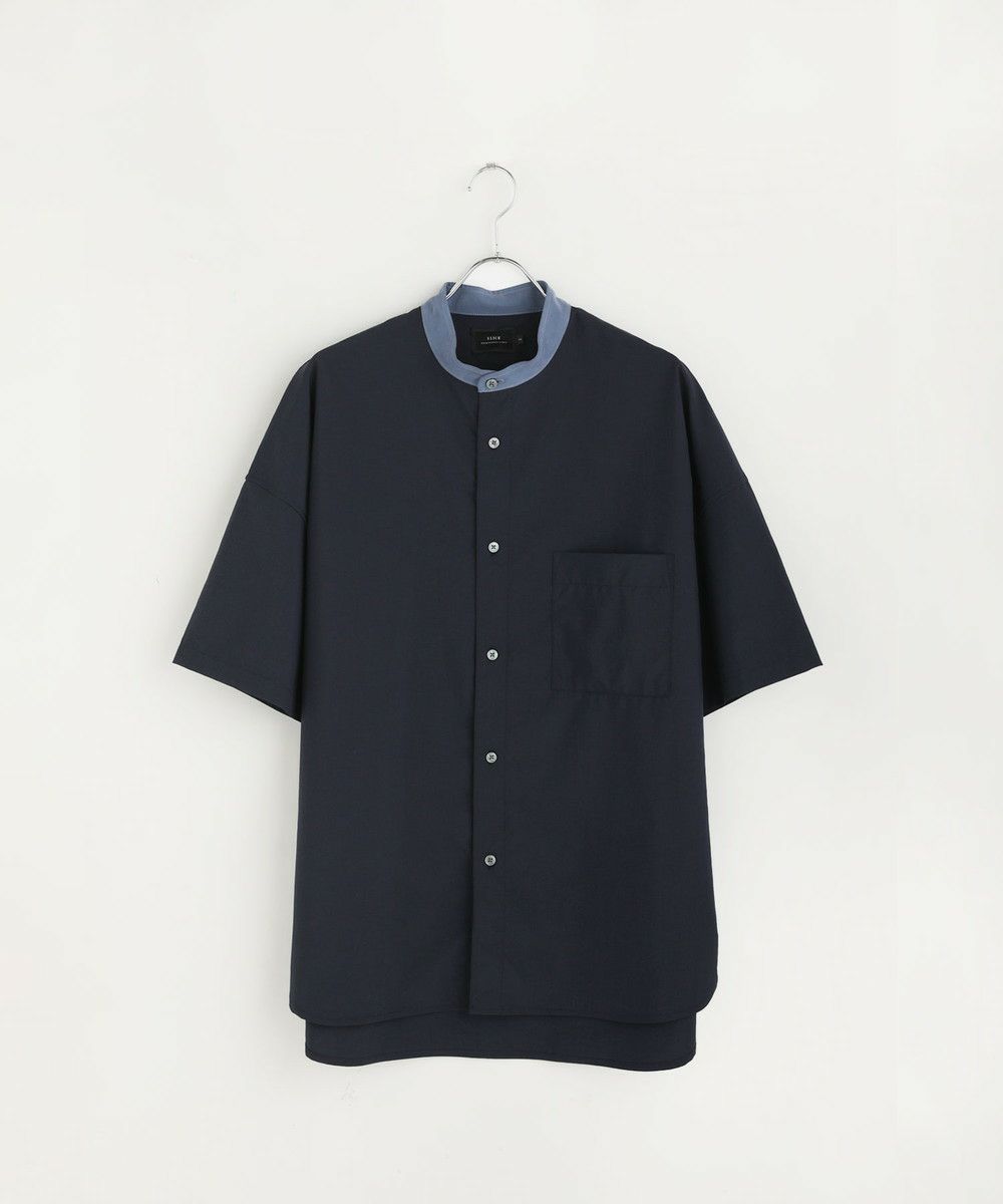 クレリック襟の配色がアクセントになった半袖バンドカラーシャツ。 肩を落としたドロップショルダーデザインで、こなれ感たっぷりの雰囲気を作り出します。 丈夫になるよう脇の縫い目は折伏せ縫いに、さらに運針の細かなステッチを採用するなど、縫製にもこだわったアイテムです。