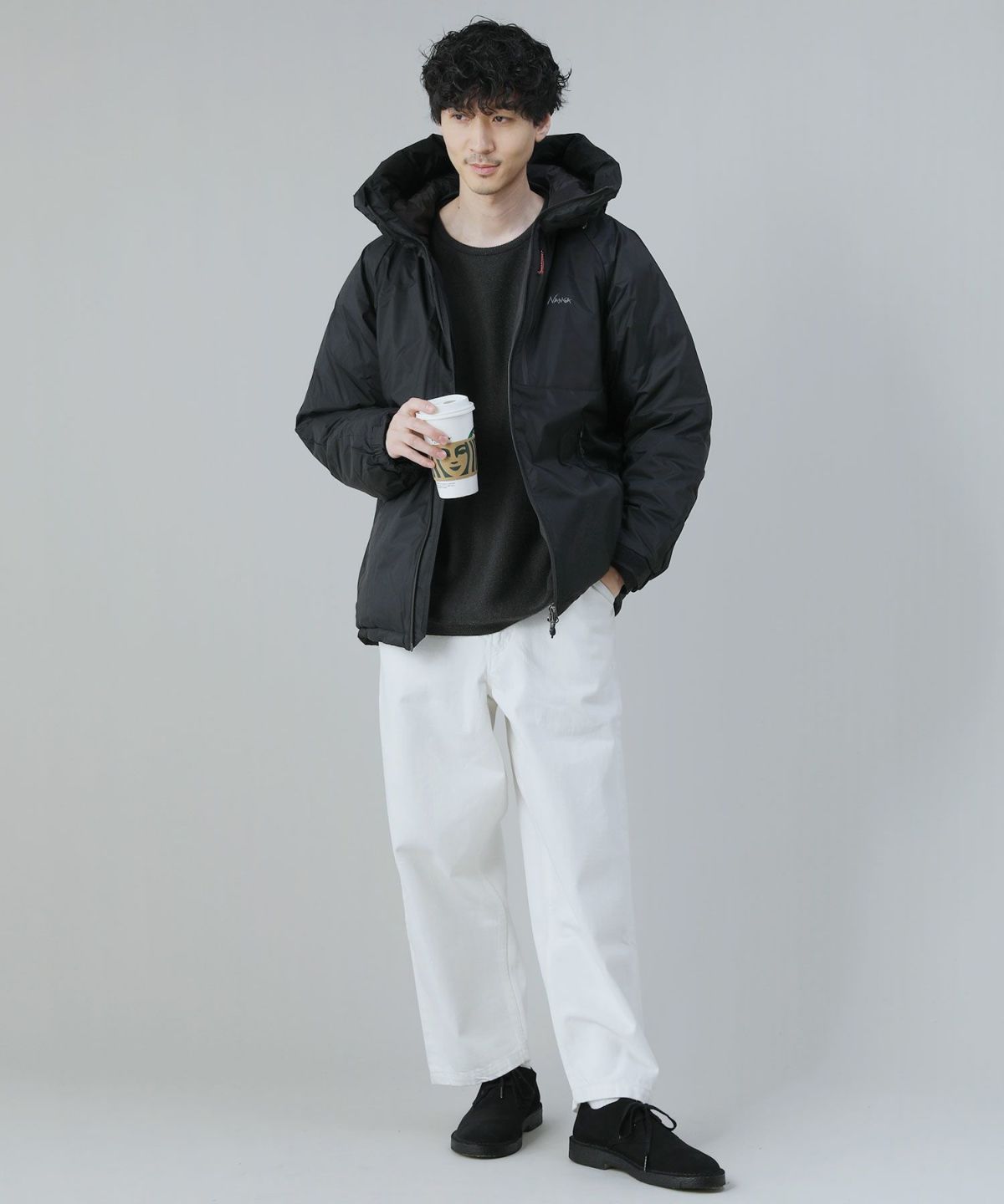 風の侵入を防ぐスタンドネックを採用。首元が隠れるまでファスナーを閉められる仕様で、首回りをしっかり覆って冷たい風から守ってくれます。立体感のあるフードや首回りの絞りを調節できるドローコード、マジックテープが付いた袖口など、寒さから身体を守るディティールが随所にございます。