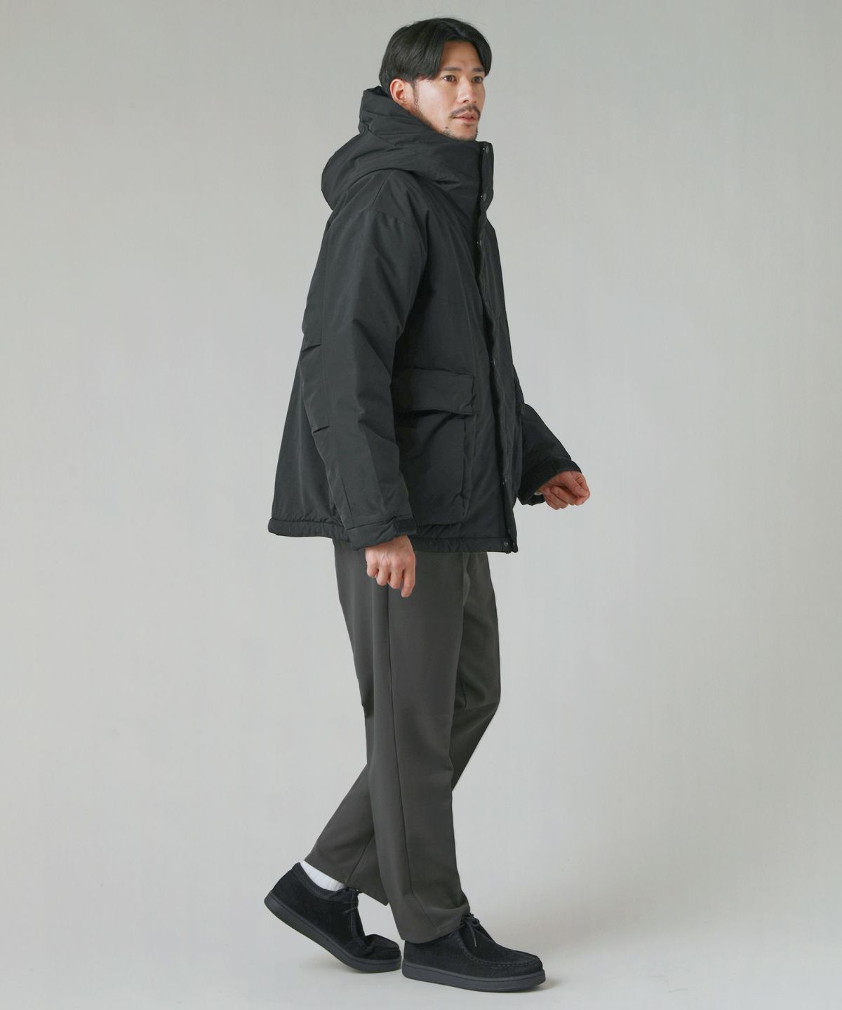 フードデザインはGEN1パーカーの中でも希少なモデルのものを採用。幅広に設定したスタンドネックと立体的で大きなフードが融合したデザインが特長で、口元から顔周りまですっぽりと覆われることで高い防寒性を発揮します。ボリューム感のあるネック部分とバランスを取るように広めに設定した身幅は、窮屈感のない快適な着心地を実現。定番のボックスシルエットなので、合わせるアイテムを選ばずご着用いただけます。