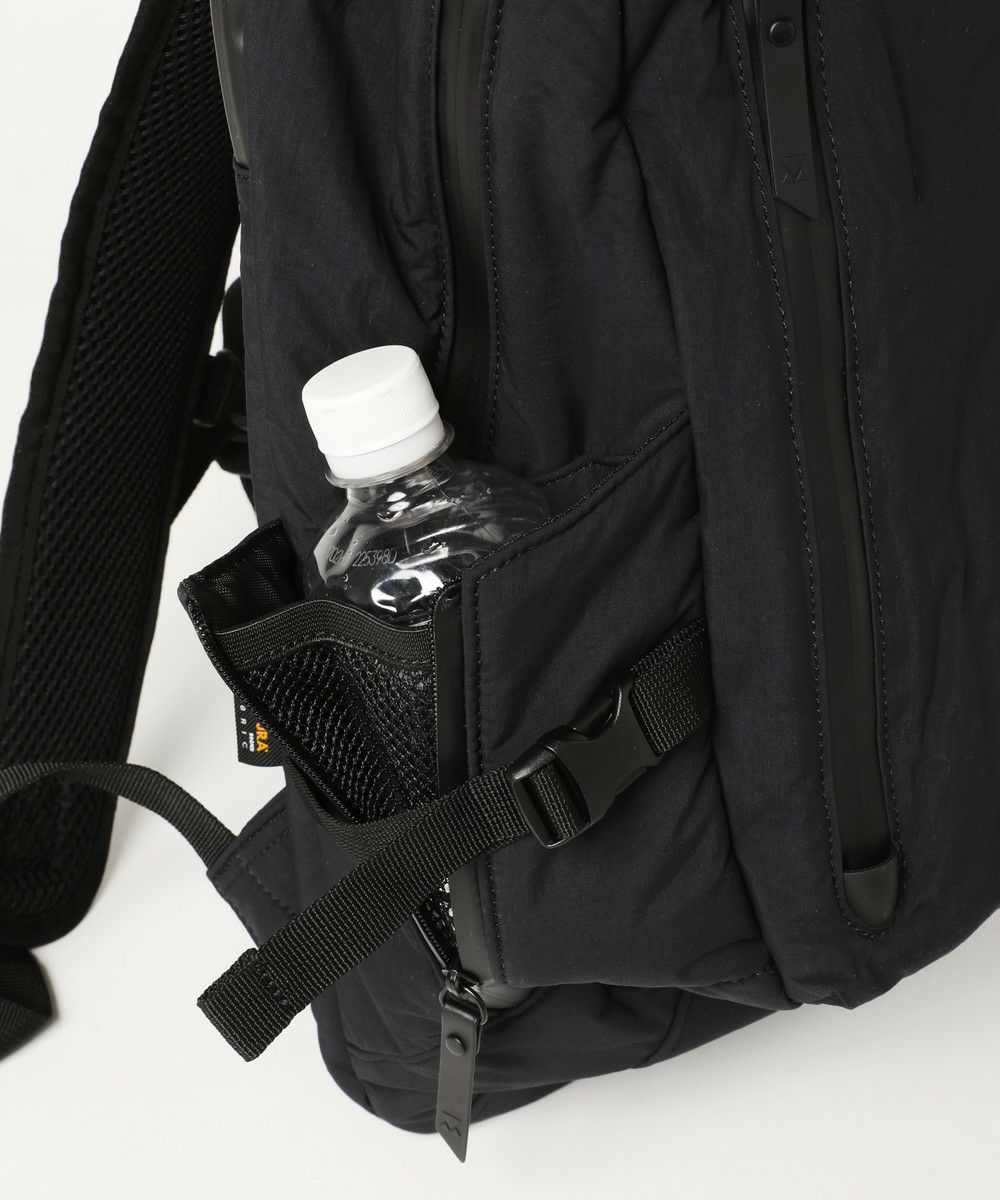 両サイドには、ペットボトルや折り畳み傘を取り出しやすい機能的なポケットも配しています。アジャスターベルトとジップ付きなのでサイズ調整が可能。荷物が多くてもスッキリまとまり、さっと出し入れができます。
