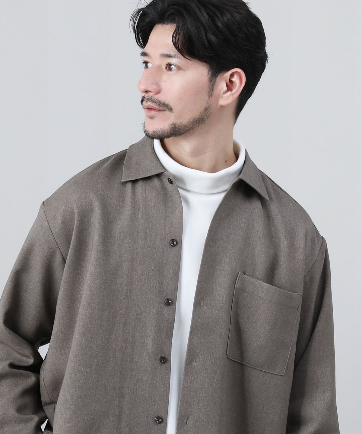 多機能生地『ラナテックレイ』を使用した長袖シャツです。ウールライクな見栄えになっており、柔らかな風合いを楽しむことができます。薄すぎず厚すぎない絶妙な生地感でロングシーズン活躍してくれます。
