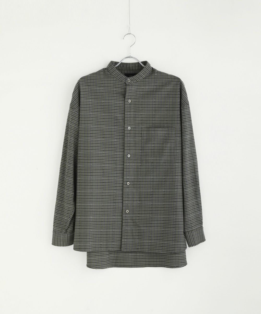 気楽に羽織れる着心地の良いオーバーサイズシャツ。清潔感のある繊細なチェック柄で、落ち着いた大人な雰囲気を演出します。最大の特徴は用いた生地。細かなフリンジを取り入れたシャツ生地で、さらっと羽織るだけでも存在感を放つ一着です。