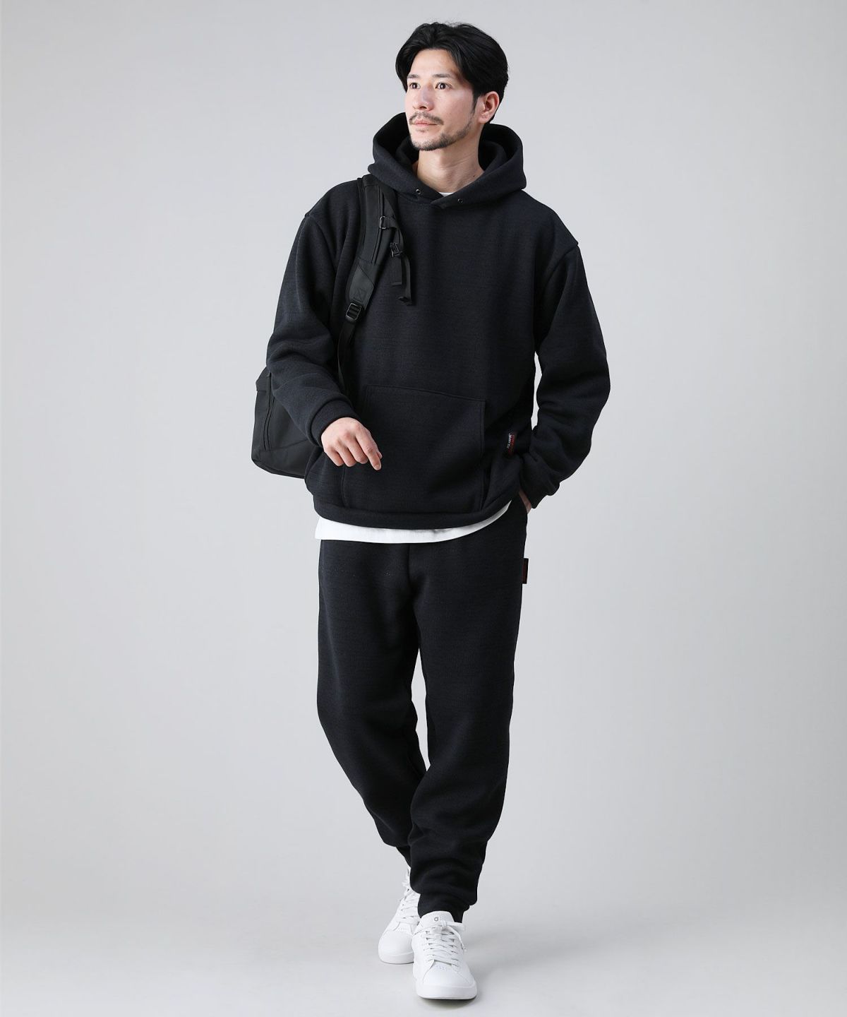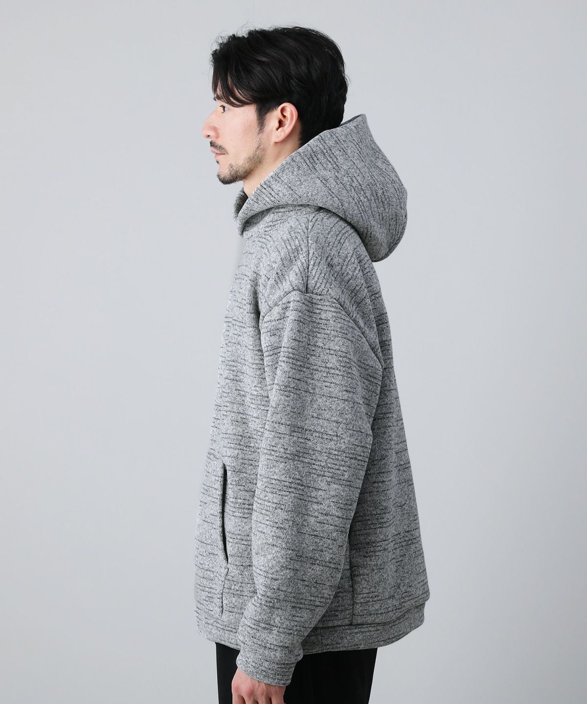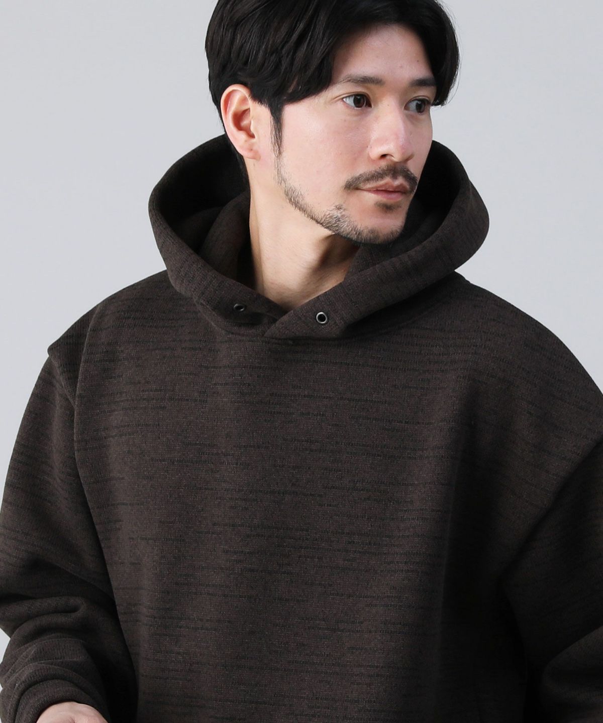 素肌に触れる裏面に『POLARTEC(ポーラテック)』を使用した、暖かいニットプルパーカー。