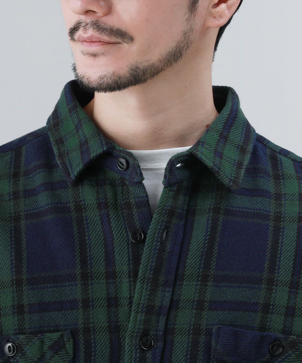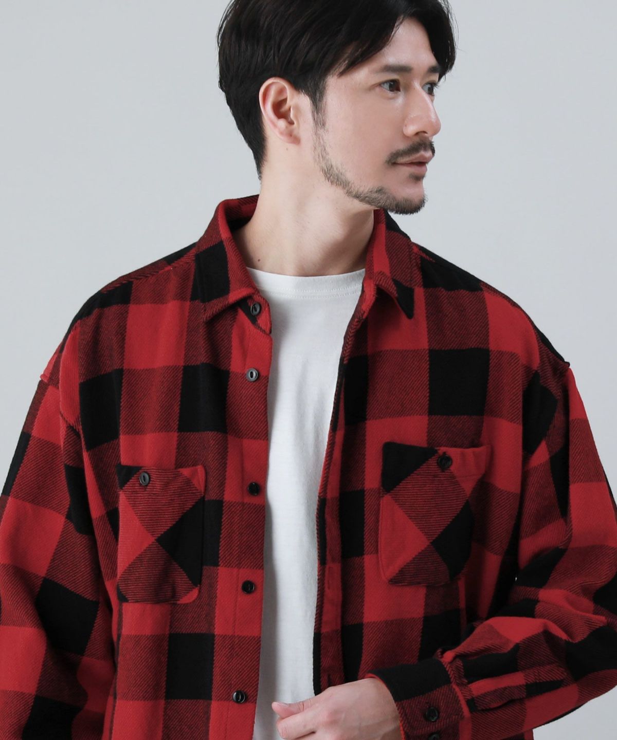 日本製10/2ヘビーツイルヴィンテージチェックレギュラーカラーボクシーAライン長袖シャツ