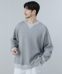 日本製ビッグワッフルサドルショルダーガゼットクルーネックXLニットソー