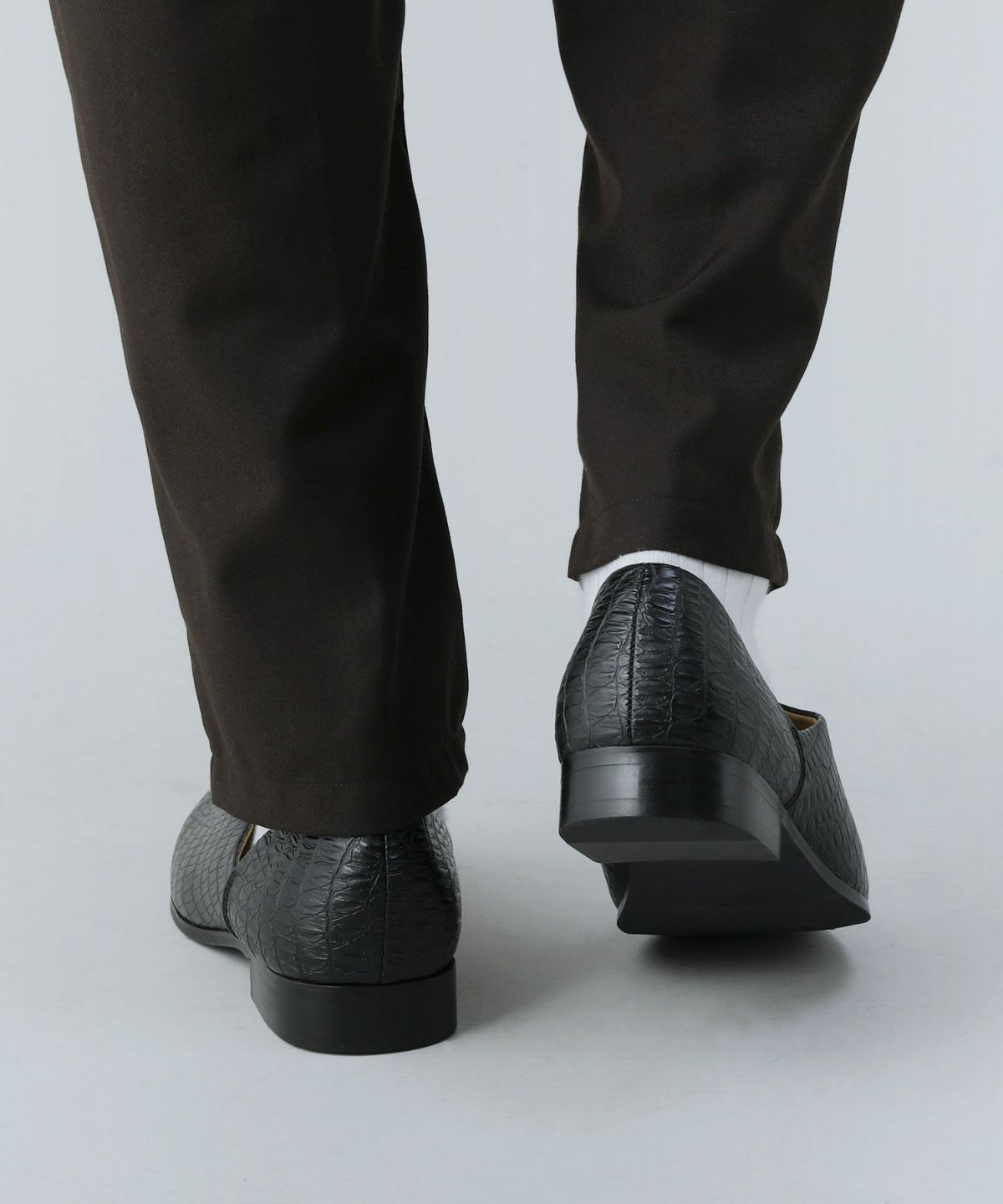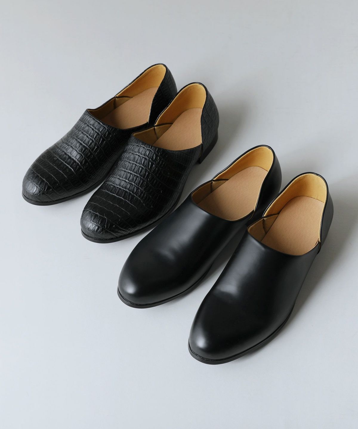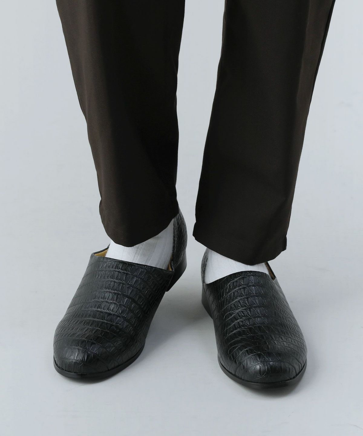 カラーは、ブラックとクロコの2種類のバリエーションをご用意しました。ブラックはほどよい光沢感があり、履くだけで洗練された印象に。クロコは型押しがラグジュアリーな雰囲気で大人っぽさを演出します。