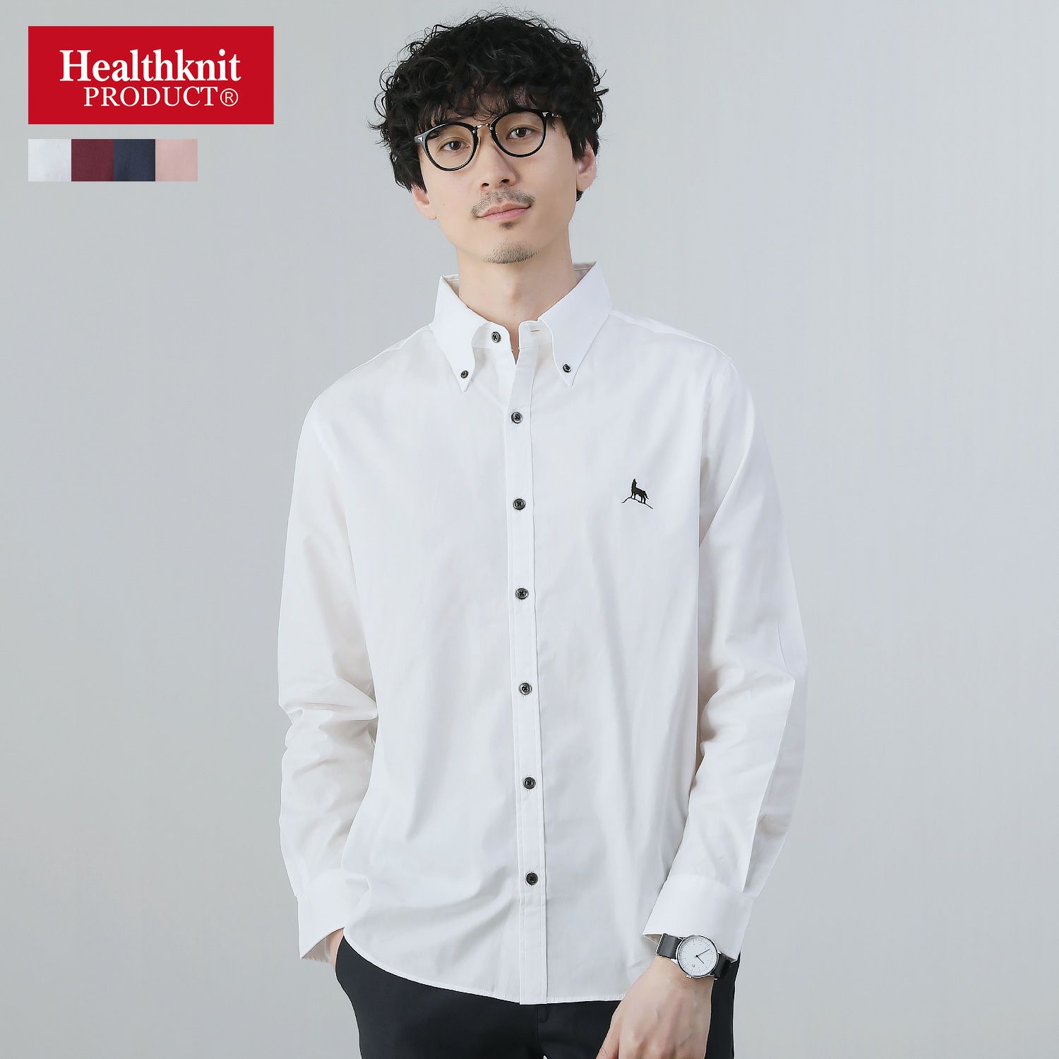 日本製ヘルスニットプロダクトブロードボタンダウン長袖シャツ