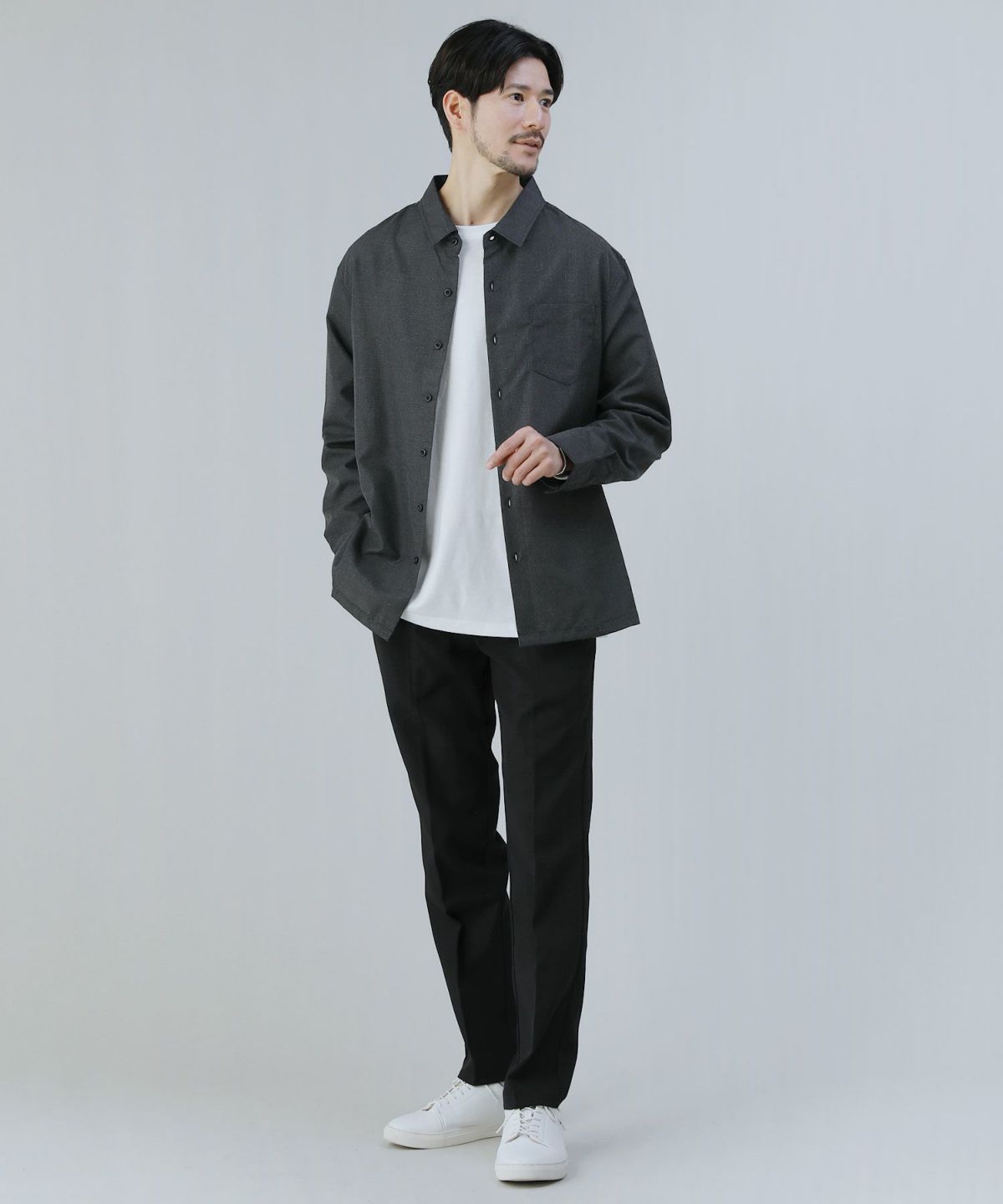 また、広めの腕ぐり、身体のラインを拾わないワイドな身幅など、全体的にゆったりとしたサイジングで設計しています。締め付け感がないのでカットソーとの重ね着もしやすいです。
