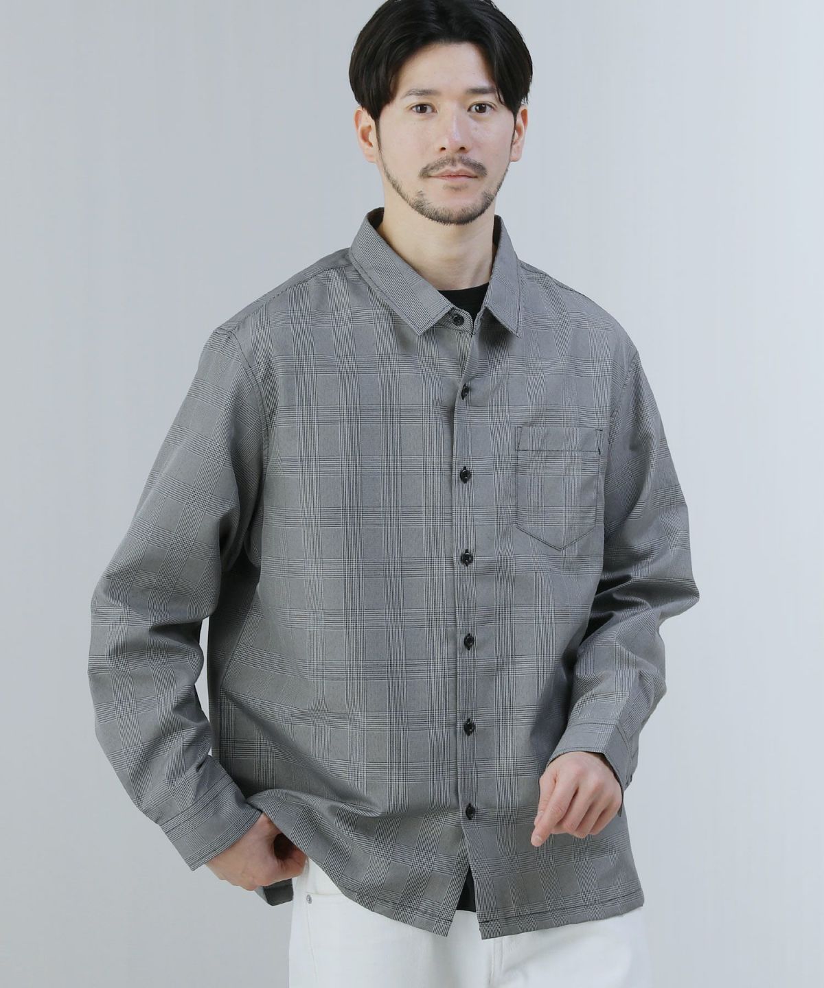 グレンチェック柄を施したグレーとブラックの2カラー展開で、引き締め感のある落ち着いた色合いが大人らしくクラシカルな印象に。ネクタイ不要のリモートワーク時の衣服としてはもちろん、デイリー向けの羽織りものとしてもオススメです。