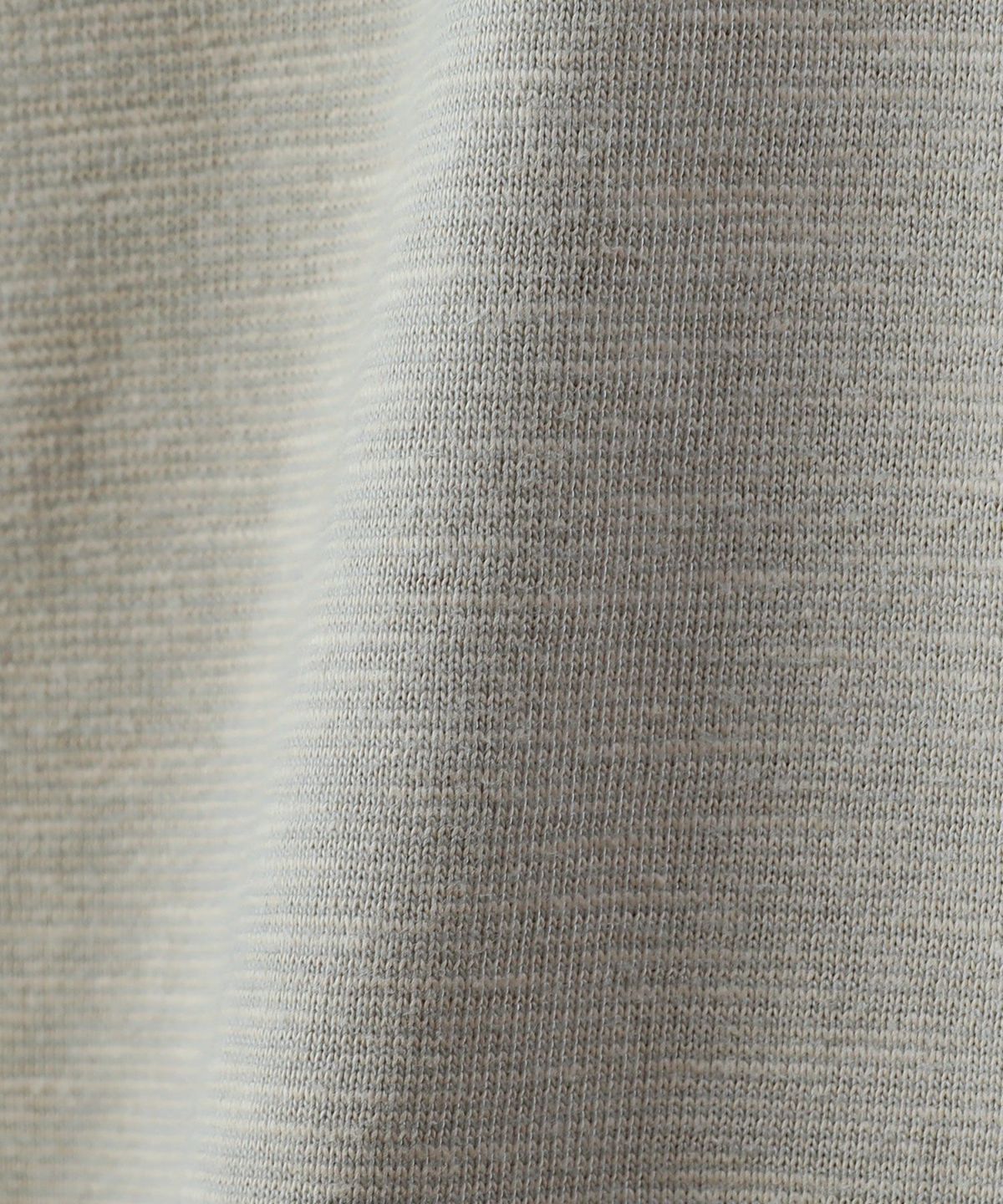 生地は、ナチュラルな風合いの杢調スラブ素材に接触冷感加工を施しています。ひんやりと感じる生地が心地良いのはもちろんのこと、汗を吸い取り素早く発散するので、夏場もベタつくことなくさらりとした着心地をキープ。洗濯後も乾きやすくシワもつきにくいのでお手入れが簡単です。