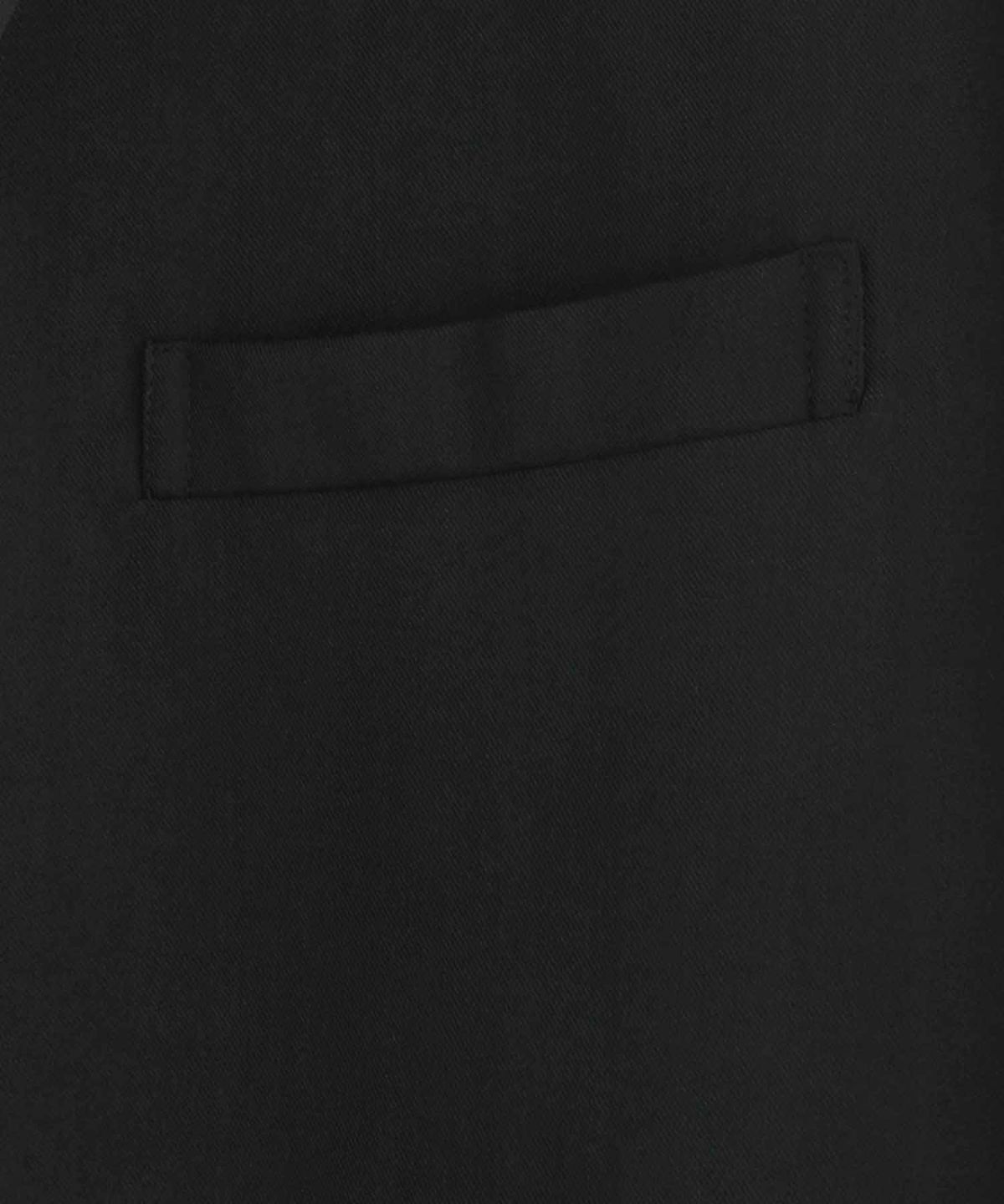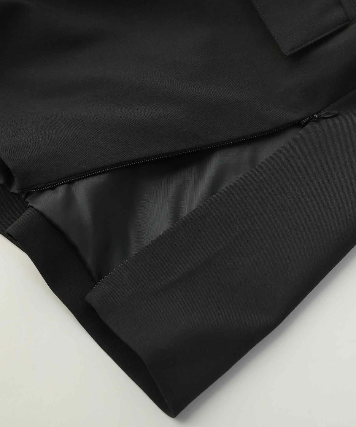 ポリエステルのイージーケア性・ライトな着心地はそのままに、ほのかな艶と上品な質感を実現させたテックツイル素材を使用しています。ポリウレタン混のため、程よいストレッチ性もあり動作にストレスを感じさせません。スーツ地のようなしなやかなハリコシと落ち感が特徴で、シワや型崩れに強いため日々のお手入れも簡単です。