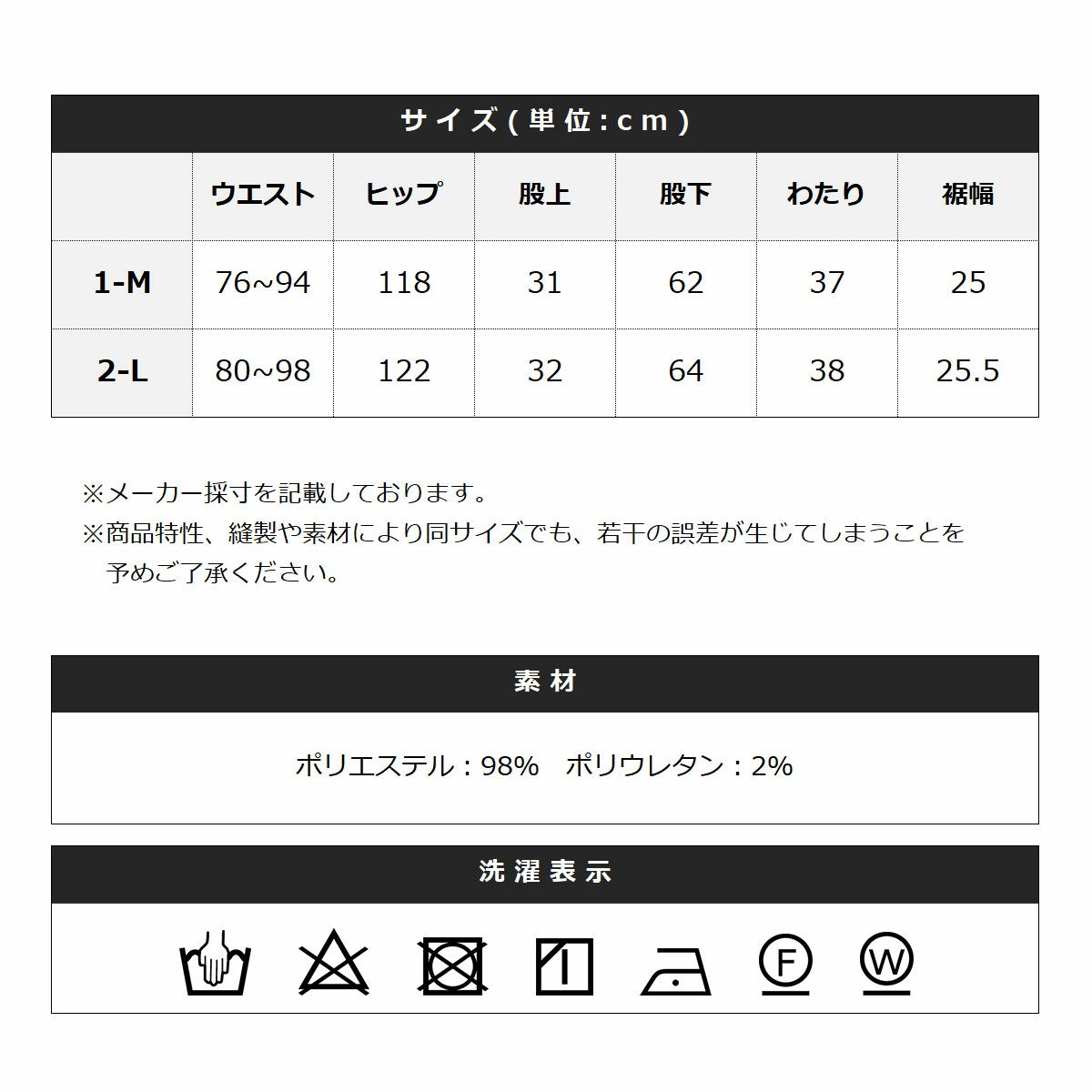 ポリエステル:98% ポリウレタン:2%
