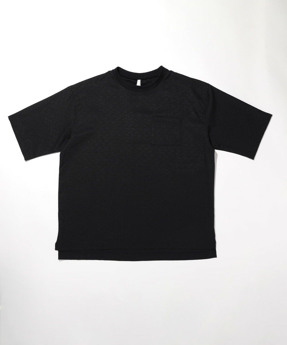 サイズ感はやや大きめに仕上げており、肩の落ちたドロップショルダーと広めに身幅を取ったデザインが、トレンドライクなシルエットを作ります。さらに前後差のある着丈と、サイドの浅めのスリットが抜け感をプラス。アクセントになる胸ポケットも付いていて、一枚でもお洒落に見せられるTシャツになっています。