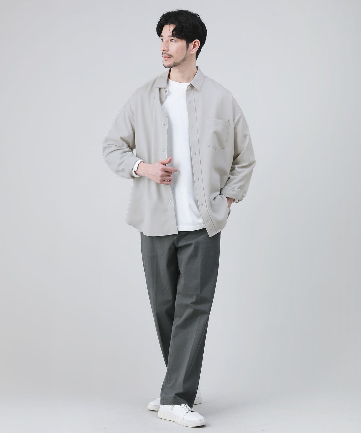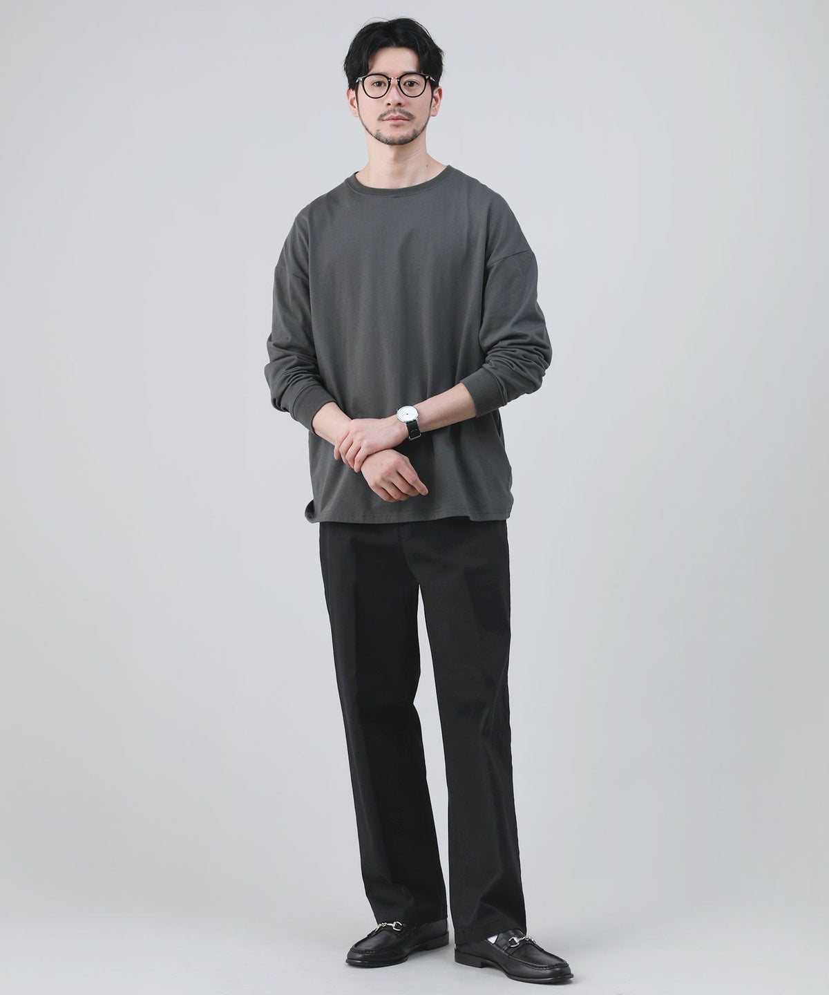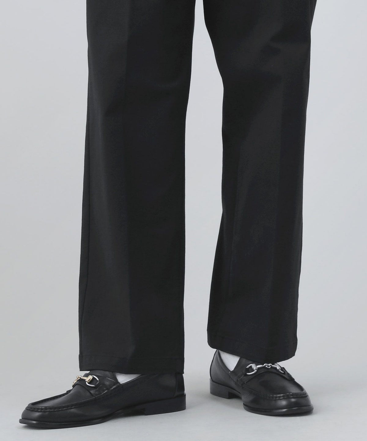 腰回りに余裕を持たせた設計でストレッチ性もあるため、ストレスフリーな穿き心地を実現。ゆとりはありつつ、すっきりとしたシルエットで、ラフになりすぎないのが特長です。シーズンレスに着回せる素材感で、普段使いはもちろん、ビジネスシーンでも重宝いただけます。