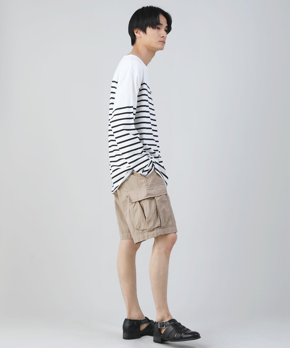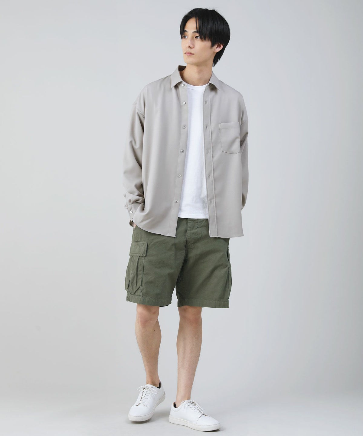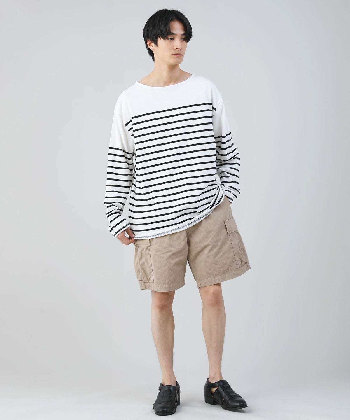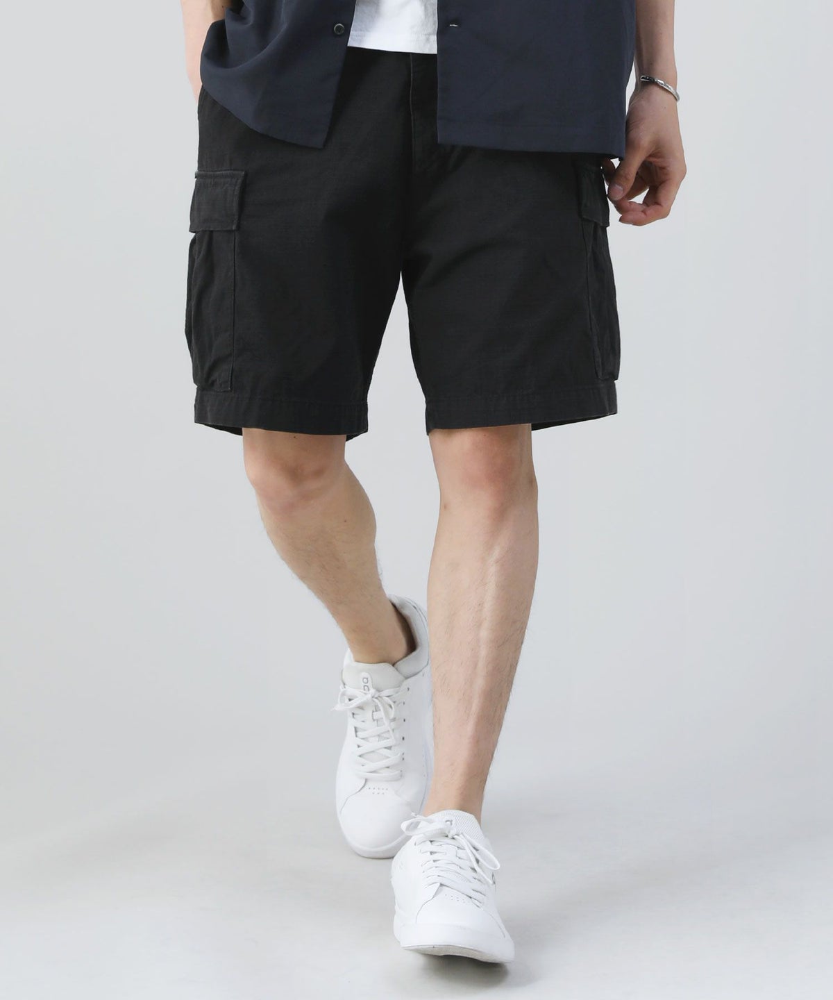 ベーシックなカラー展開で、デイリーやアウトドアなど幅広いシーンに対応できるアイテム。無地Tシャツやストライプカットソーなどのカジュアルなトップスと馴染みやすく、リゾート風のオープンカラーシャツを羽織ってこなれたキレカジスタイルを作るのもおすすめです。
