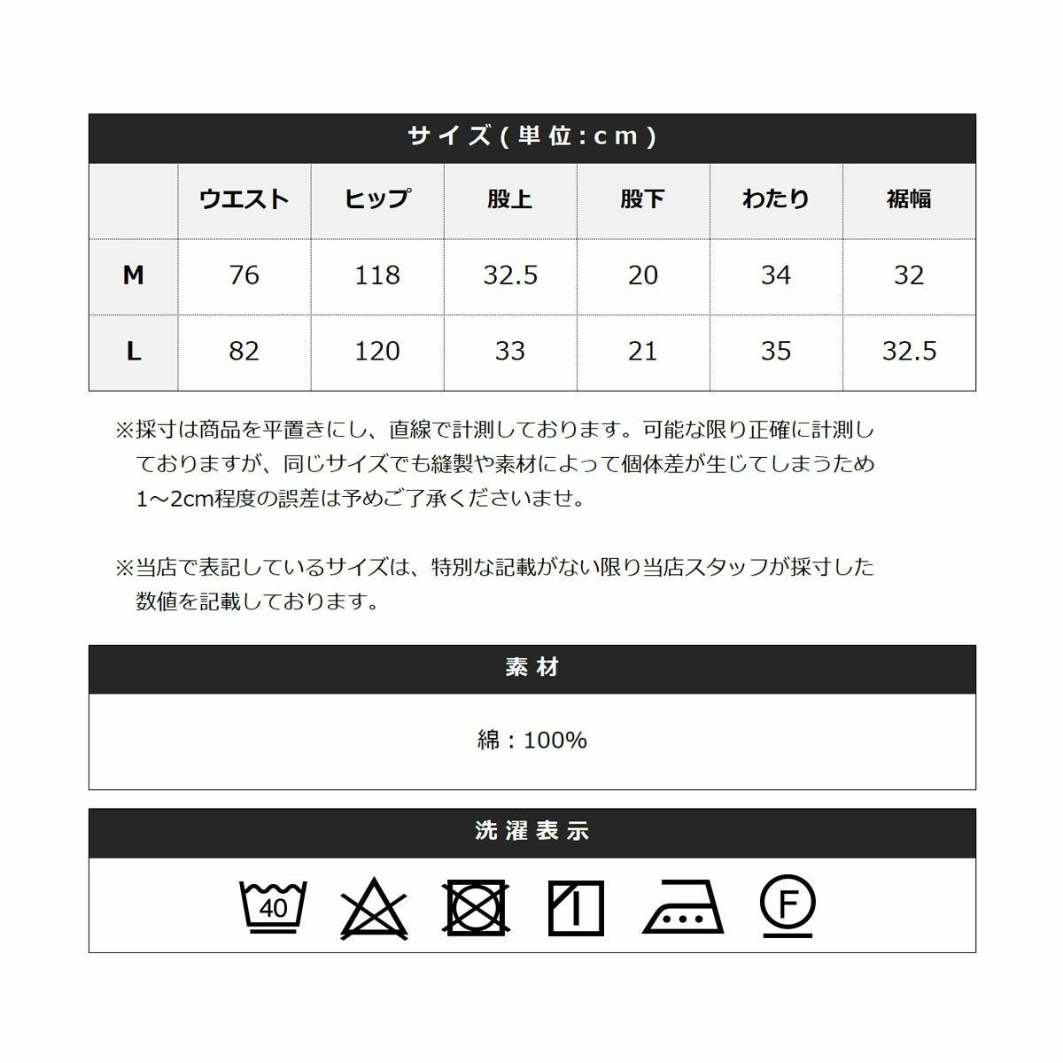 ※商品特性、縫製や素材により同サイズでも、若干の誤差が生じてしまうことを予めご了承ください。