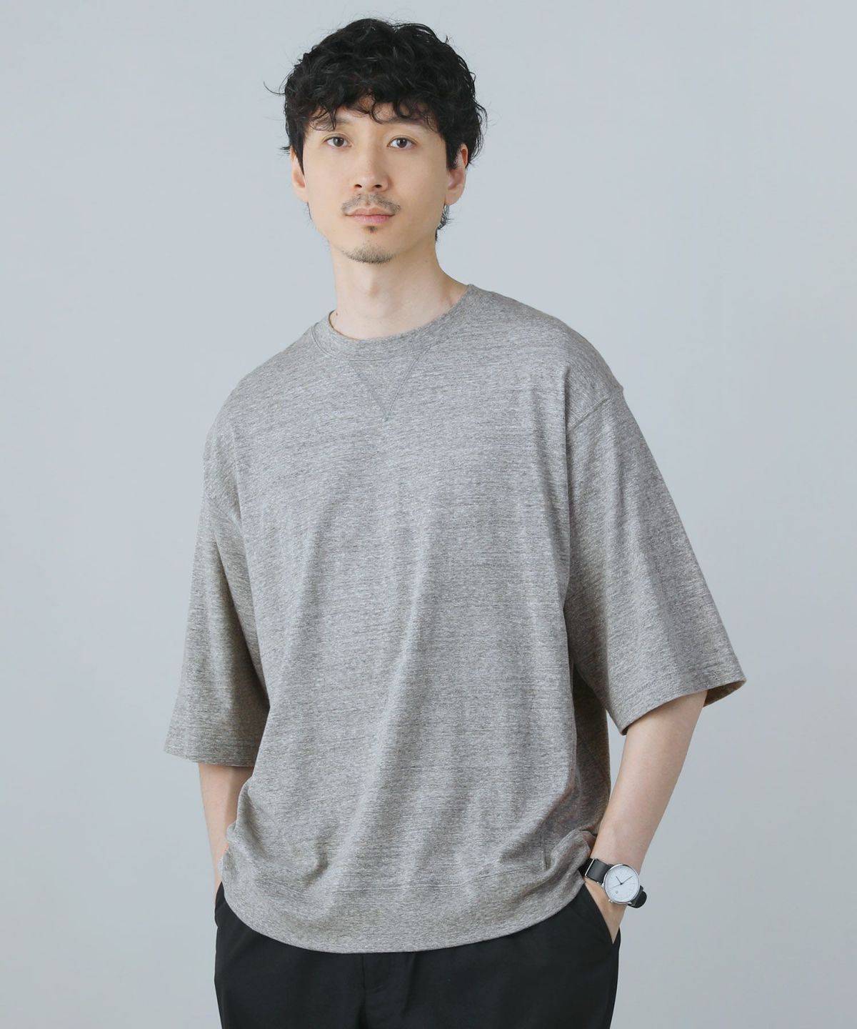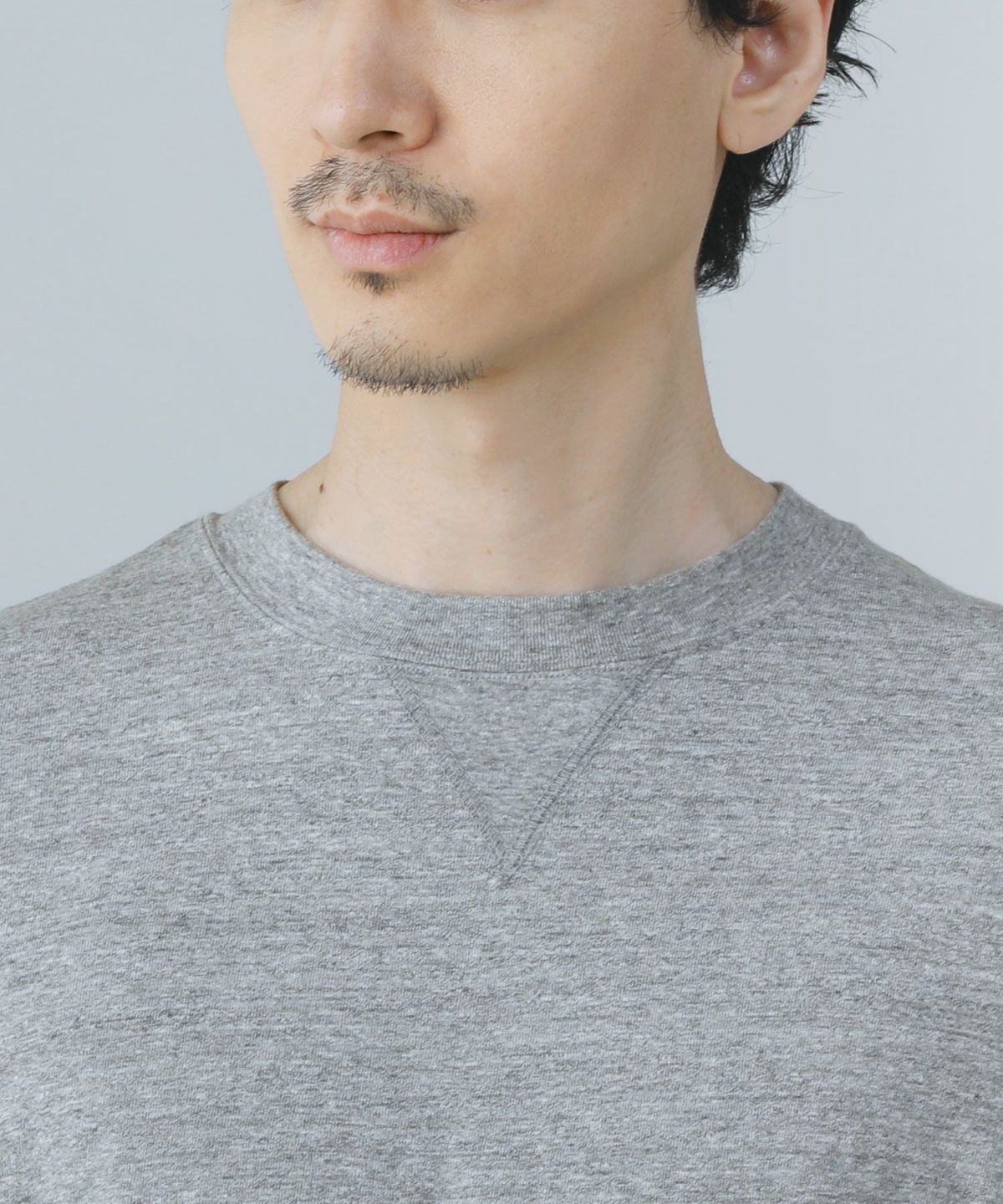 日本製ラフィー天竺(5.5オンス)ガゼットクルーネック ハーフスリーブスウェットライクTシャツ