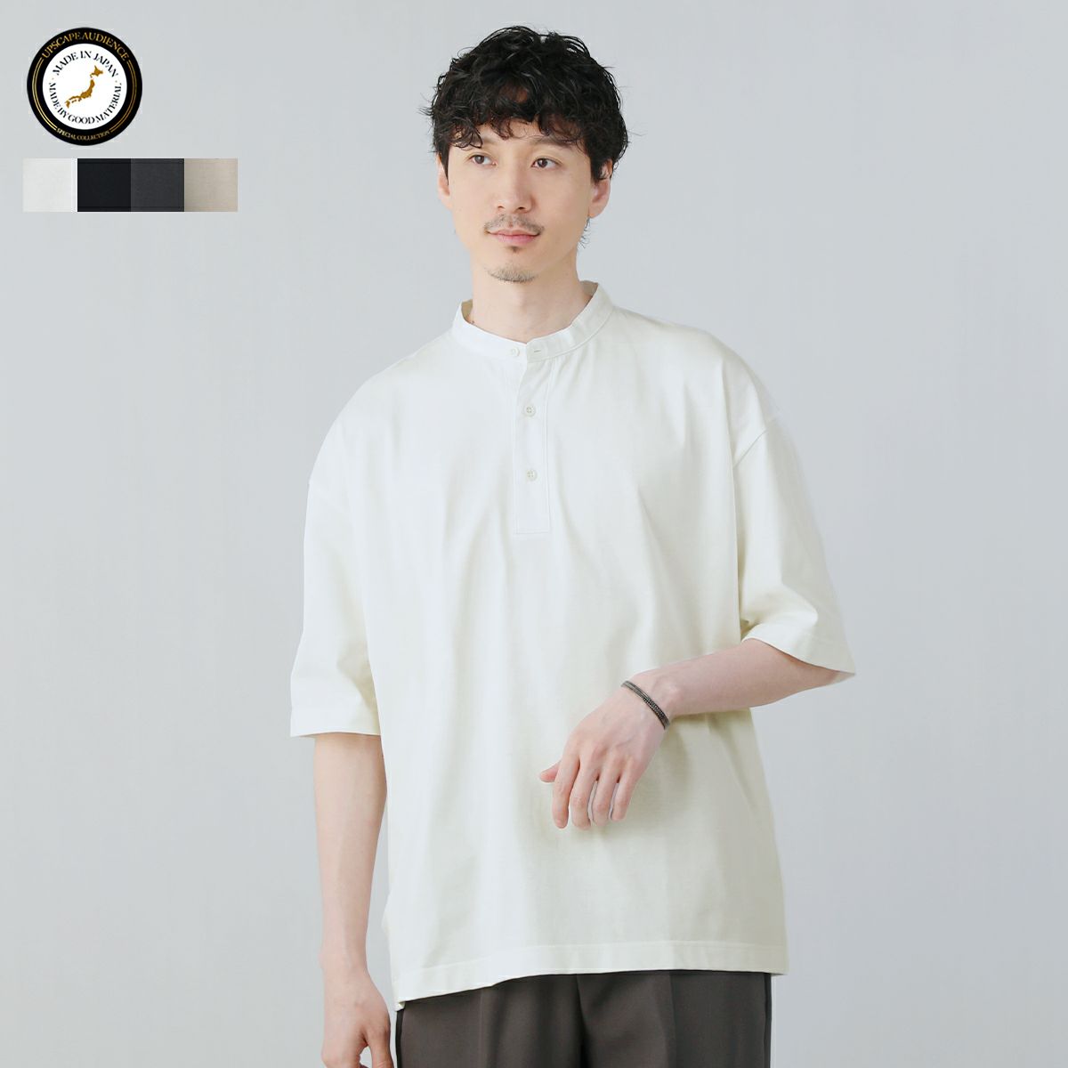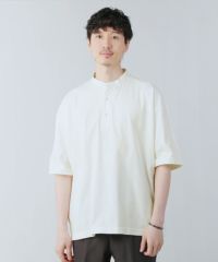 バンドカラーシャツによく似た襟デザインで、Tシャツでありながらもシャツのようなきちんと感も演出してくれるアイテムです。