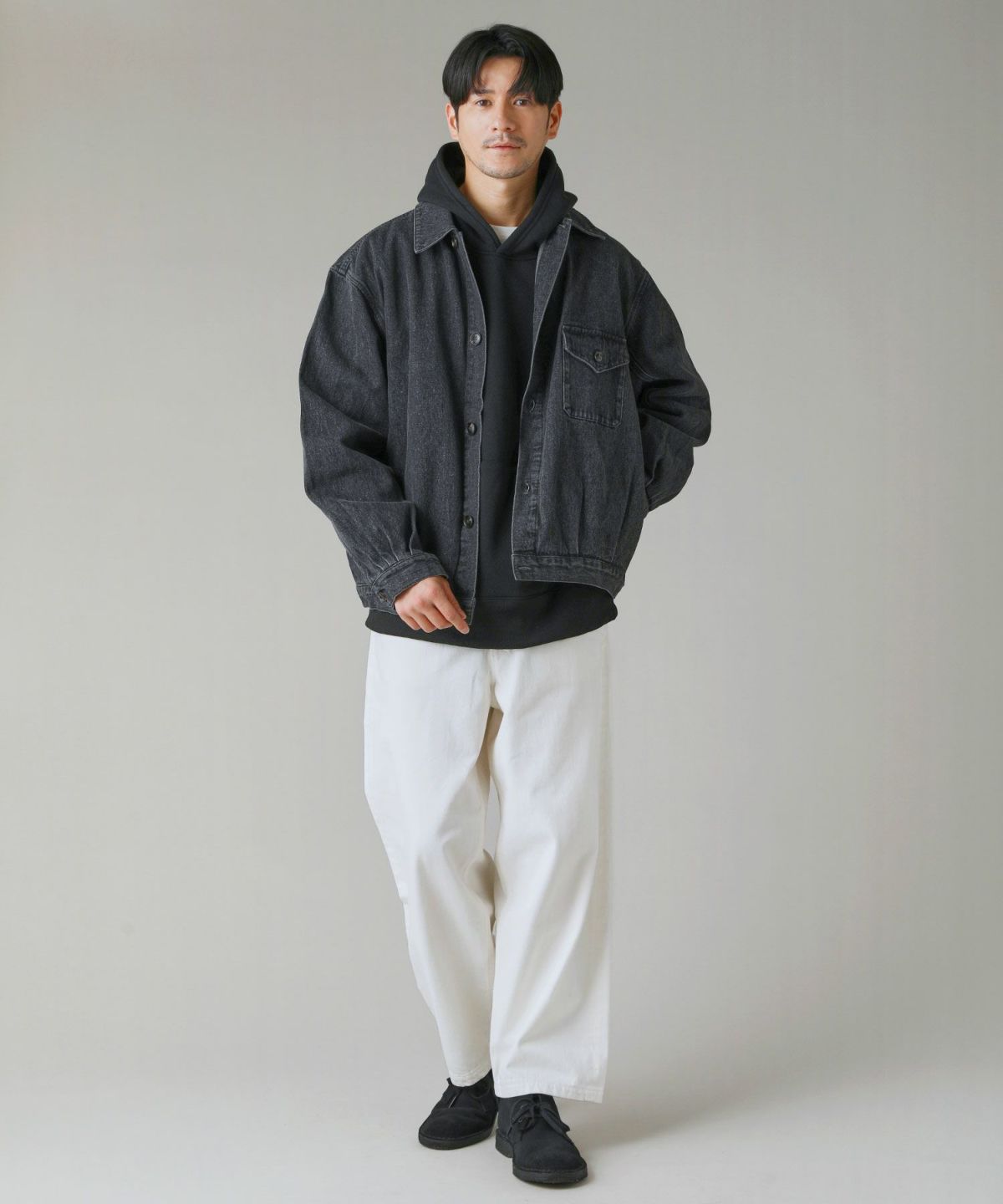 サイズはゆったりとしたリラックス感のあるビッグシルエットデザインで、トレンド感のある着こなしをお楽しみいただけます。大きすぎず程よいサイズ感のフードは紐なしのデザインに仕上げているためスッキリと見栄えが良く、カジュアルアイテムでありながら上品な印象も兼ね備えています。