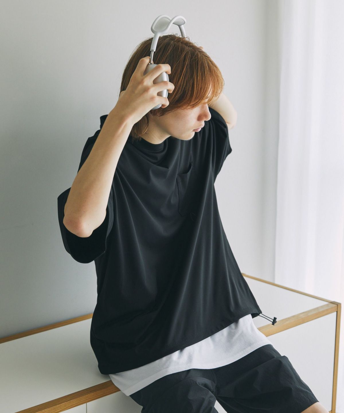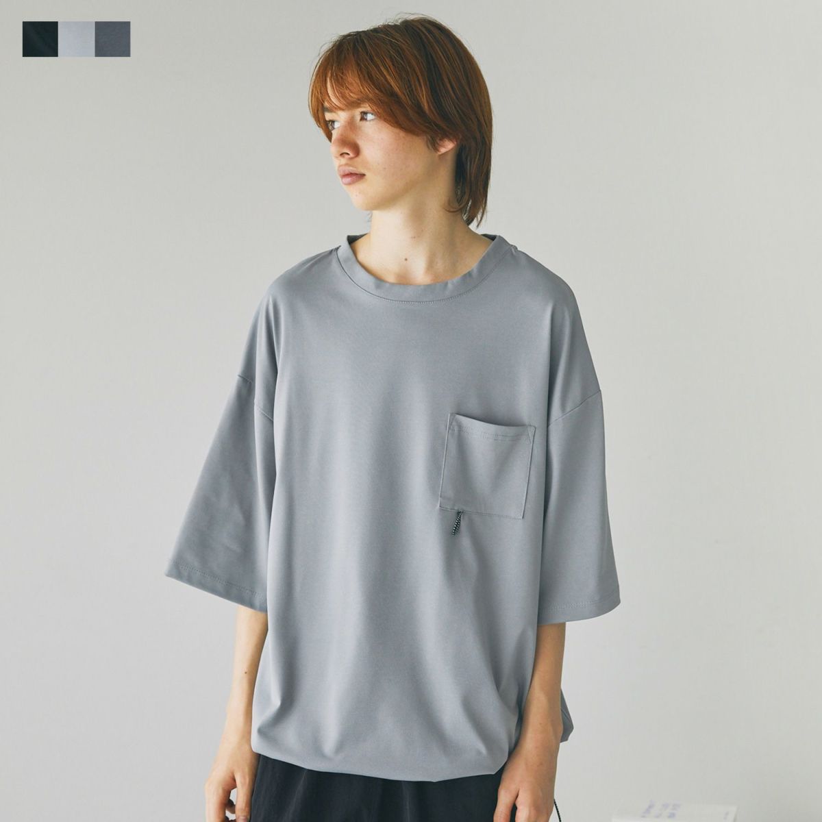 UVカット&ストレッチ ポリエステル天竺ビッグ半袖/5分袖Tシャツ ドローコード