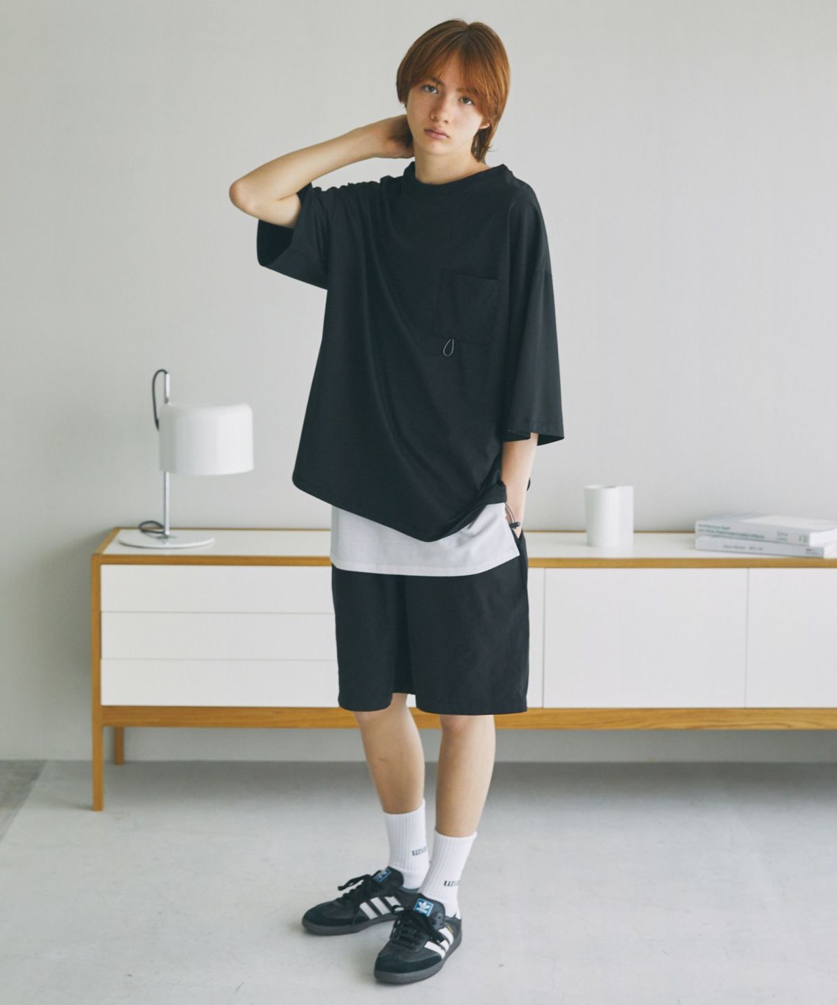 袖はゆとりのあるサイズ感に合わせて長めの丈感に設定しており、春先から晩夏まで長い期間ご着用いただけます。ハーフパンツと合わせた爽やかなコーディネートや、カーゴパンツと合わせたアウトドア感のあるコーディネートなど、様々な合わせ方でロングシーズン活躍する一着です。