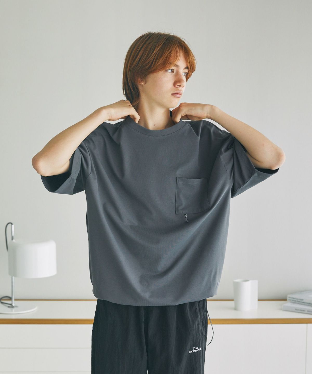 素材にはシャリ感のある風合いと肌離れの良いドライなタッチが魅力のハイツイスト天竺を使用。シワになりにくく毛羽も少ない生地で、クリアで清潔感のある印象を与えてくれます。暑さの続く日も爽やかな着心地でお召しいただけるアイテムです。