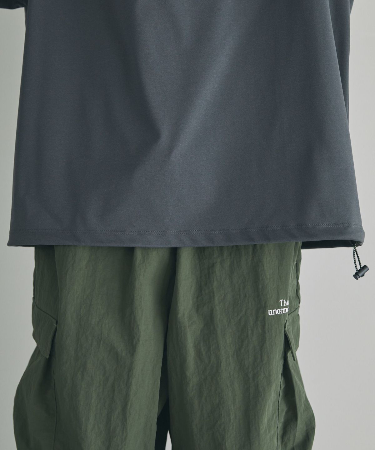 ロゴ刺繍ナイロンワイド裾ドローコードカーゴパンツ