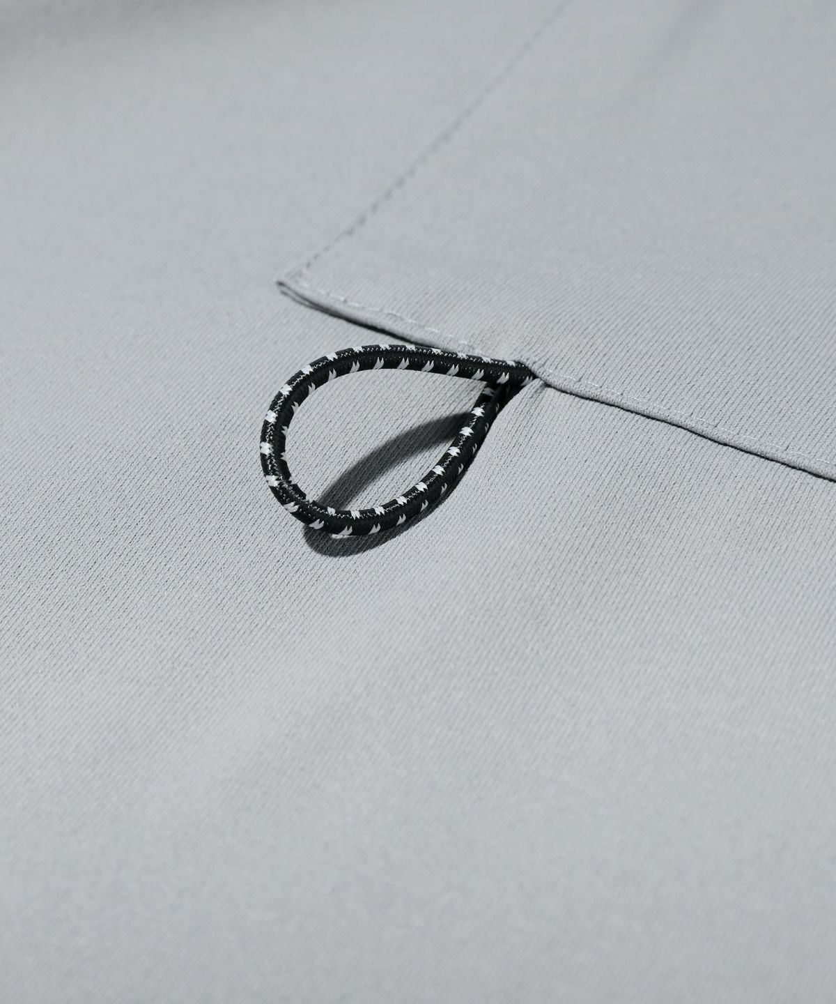 サイズ感はやや大きめに仕上げており、肩の落ちたドロップショルダーと広めに身幅を取ったデザインが、トレンドライクなシルエットを作ります。胸ポケットと裾にはドローコードを施していて、シンプルさの中にアウトドアテイストのアクティブな印象をプラス。裾のドローコードは絞り具合でシルエットや着丈に変化をつけることができ、着こなしの幅を広げてくれます。
