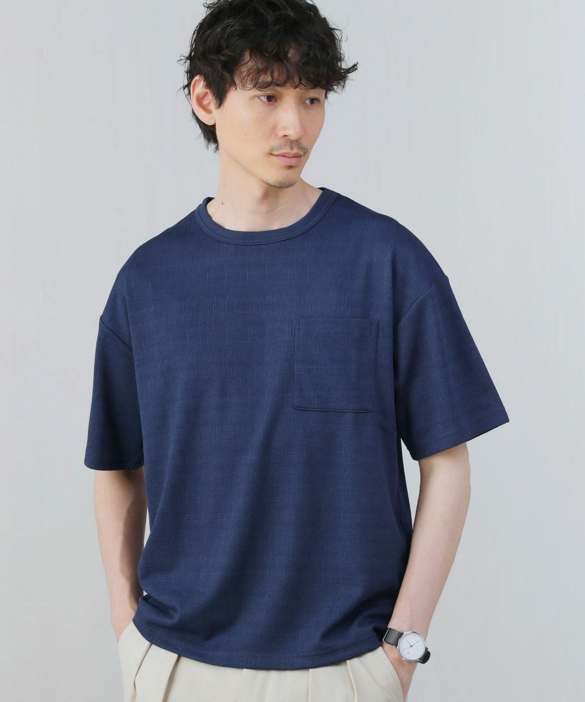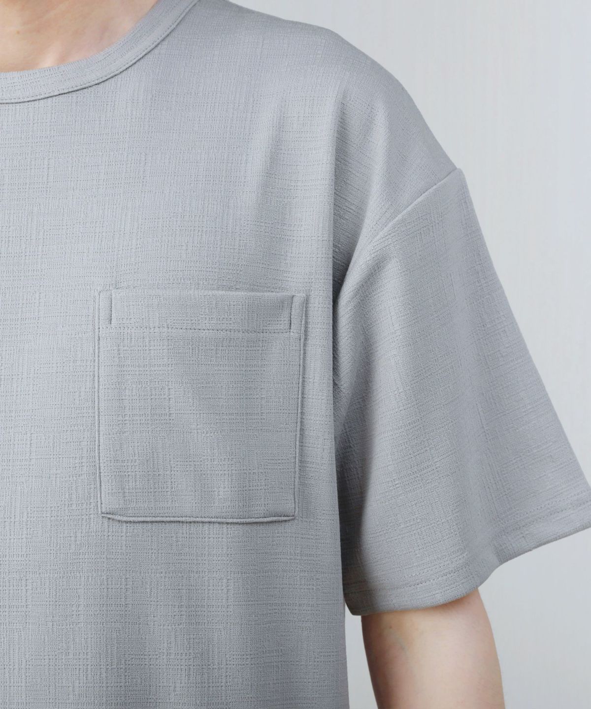 楊柳ジャガード胸ポケットクルーネックカットソー