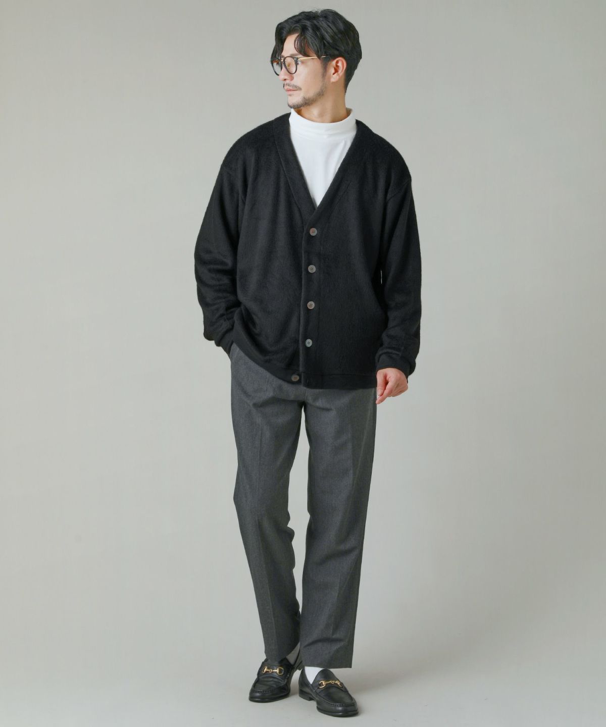モヘアのような柔らかい肌触りとシャギー感が魅力のカーディガン。