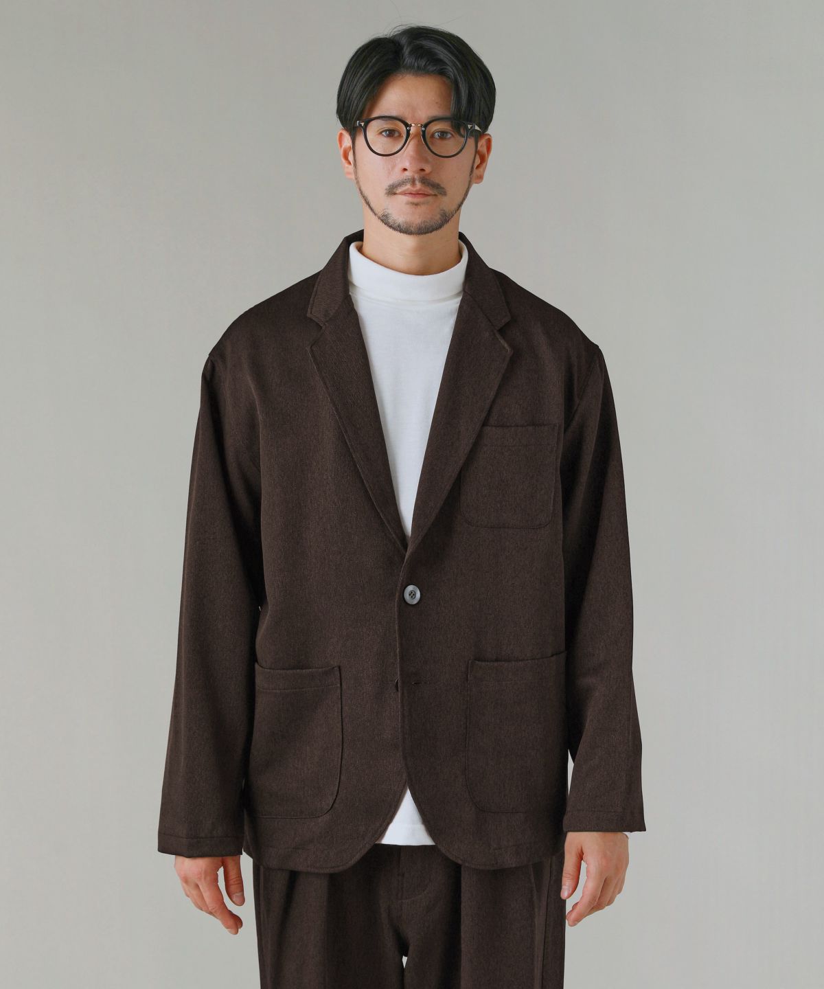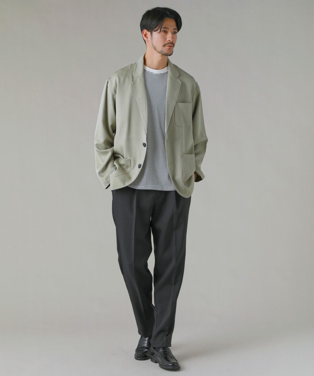 着こなしを上品にまとめてくれるテーラードジャケットですが、やや余裕のあるボックスシルエットとなっているためカッチリした印象になりにくく、カーディガン感覚で気軽に着こなしていただけます。