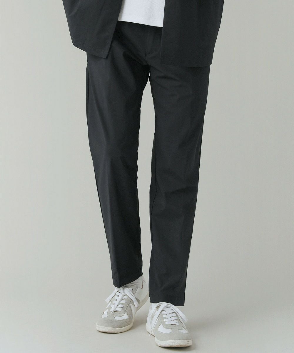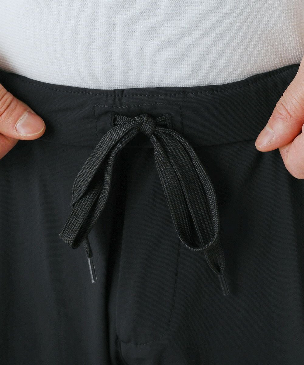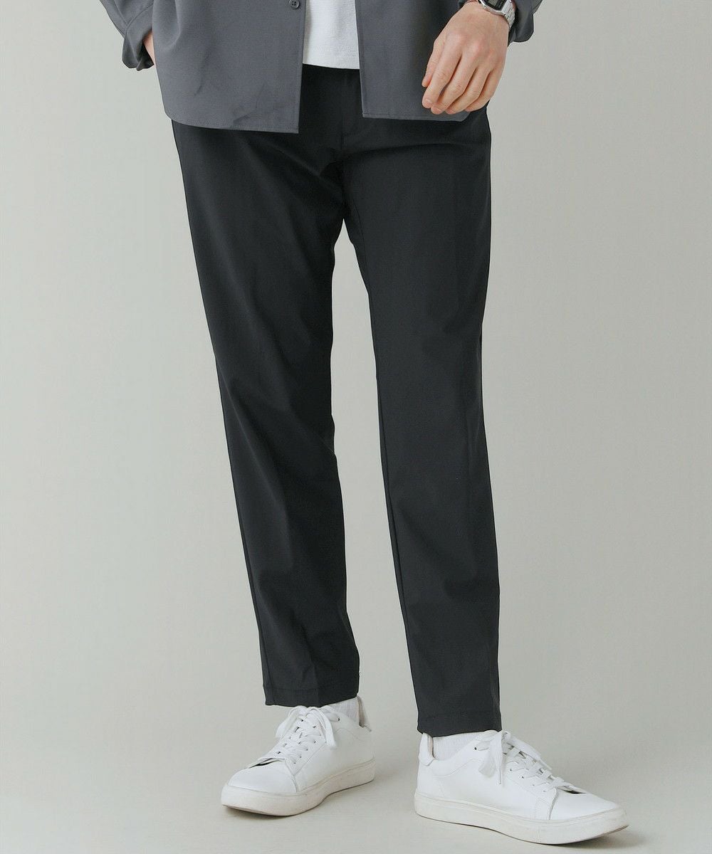 デザインはオン・オフどちらにも合わせやすいスリムテーパードラインを採用。気温や湿度の高いシーズンでもサッと手に取りやすく、すっきりとした印象にまとめてくれます。キレイめなルックスをキープしつつ、ウエストはゴムと紐で調節可能なイージーパンツ仕様。フロントのジップや計4つのポケットなど、ディテールも抜かりないアイテムです。ストレッチ性のある素材で膝の曲げ伸ばしもストレスなく行え、デスクワークなどのシーンにも活躍します。