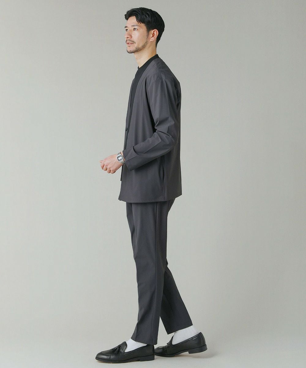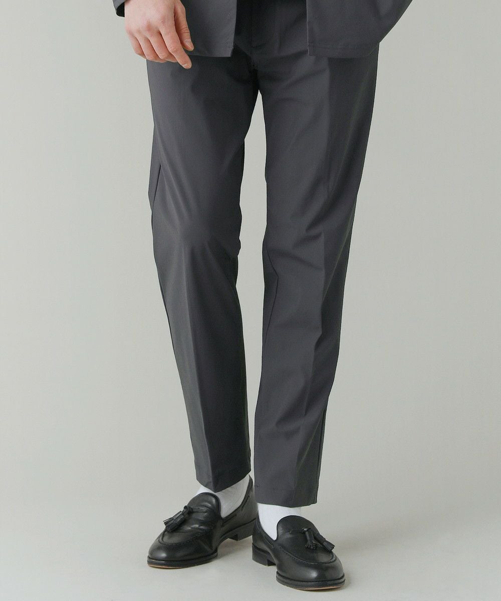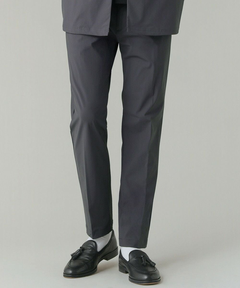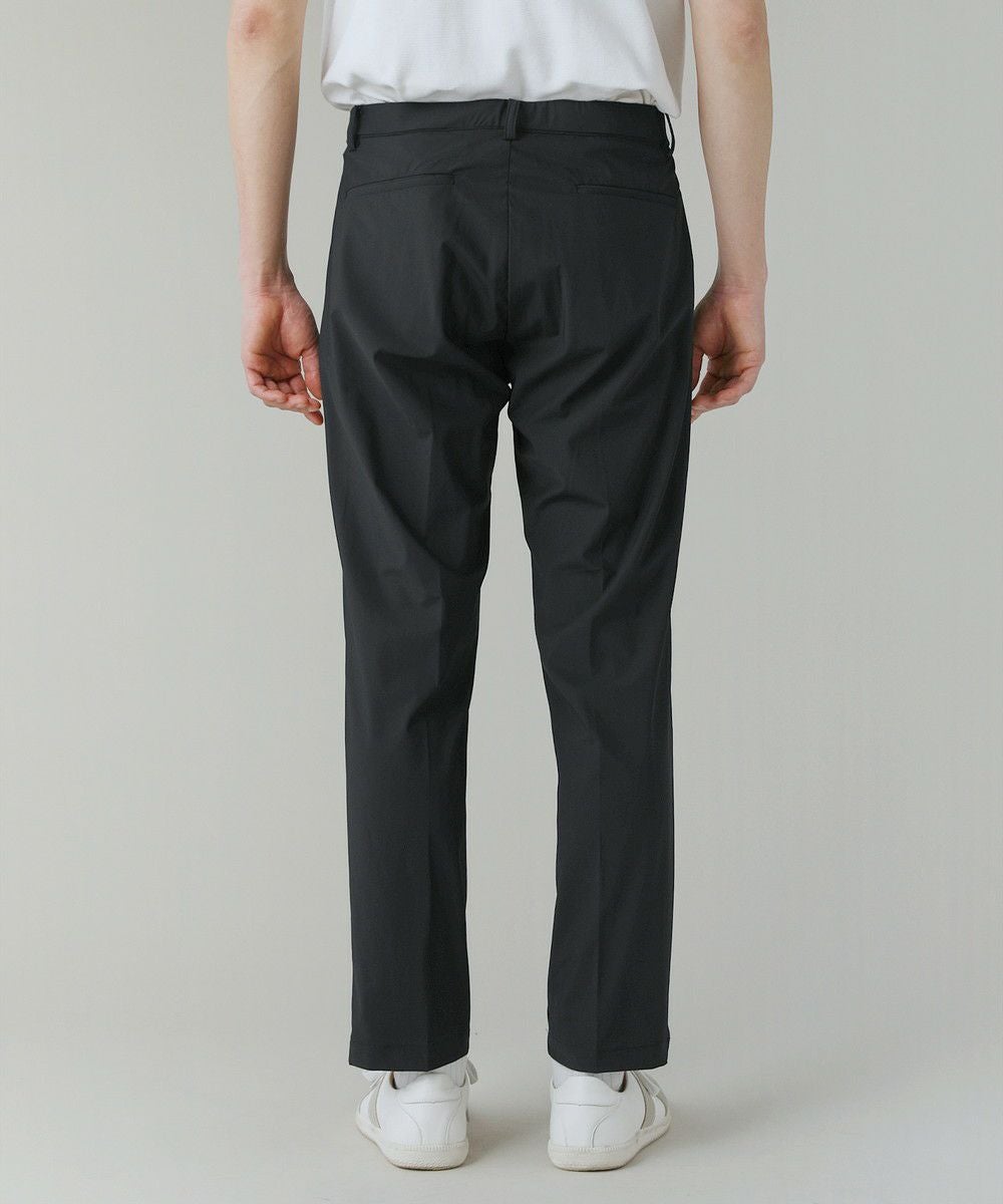 デザインはオン・オフどちらにも合わせやすいスリムテーパードラインを採用。気温や湿度の高いシーズンでもサッと手に取りやすく、すっきりとした印象にまとめてくれます。キレイめなルックスをキープしつつ、ウエストはゴムと紐で調節可能なイージーパンツ仕様。フロントのジップや計4つのポケットなど、ディテールも抜かりないアイテムです。ストレッチ性のある素材で膝の曲げ伸ばしもストレスなく行え、デスクワークなどのシーンにも活躍します。