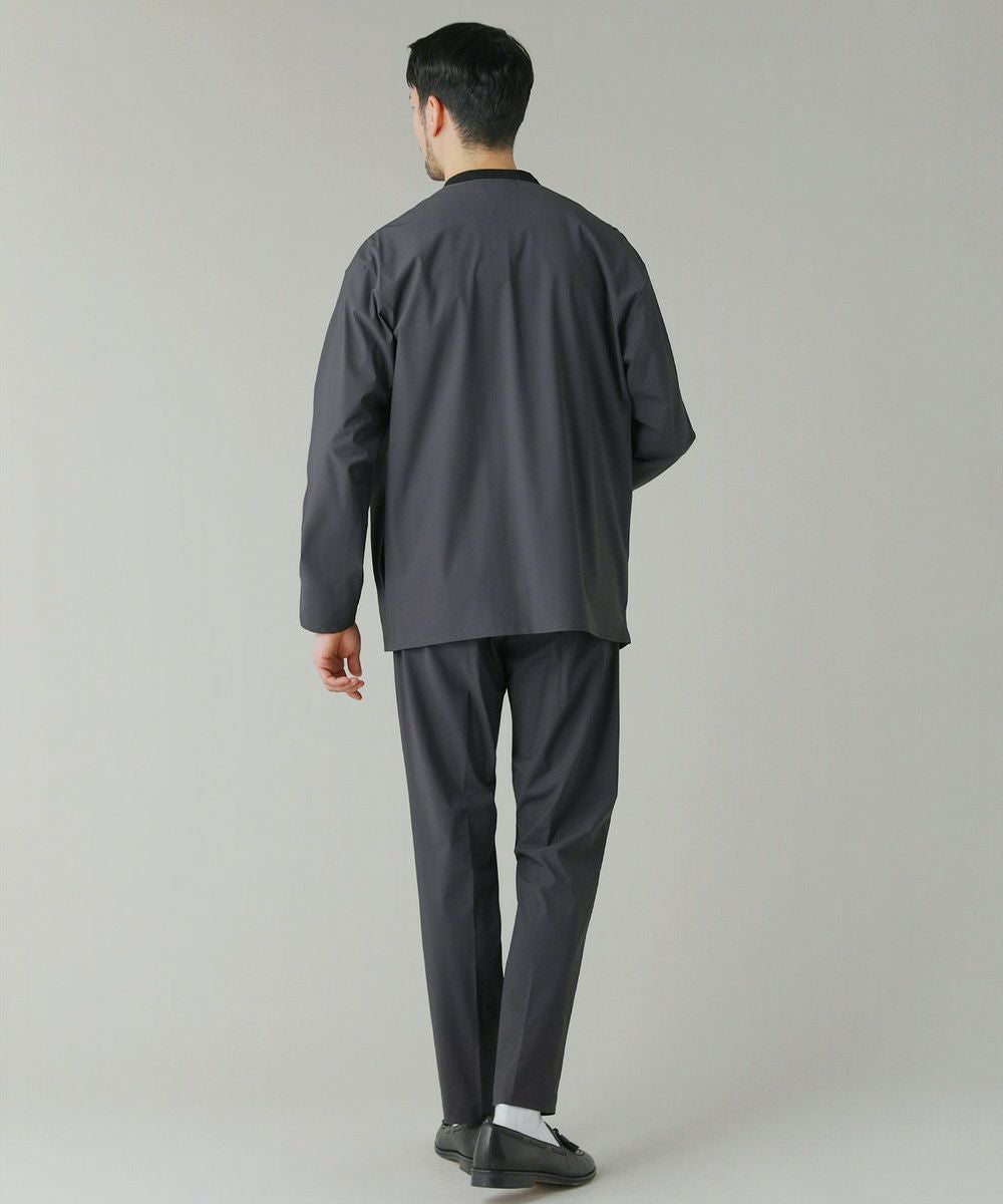 接触冷感・吸汗速乾ナイロンニットノーカラー長袖ジャケット