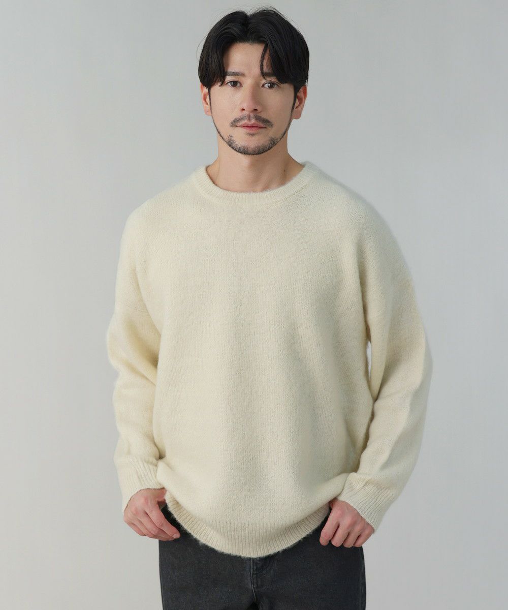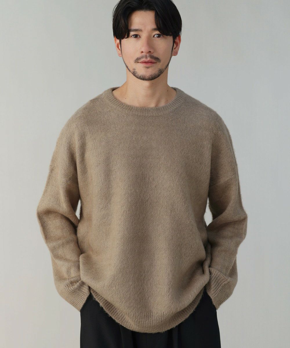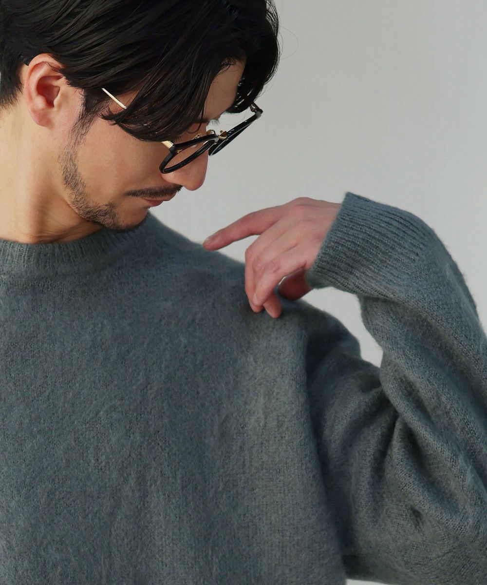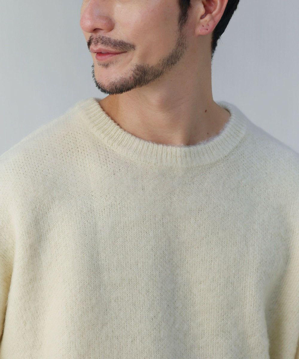 柔らかな質感とほどよいボリュームが魅力の、モヘアタッチクルーネックニット。