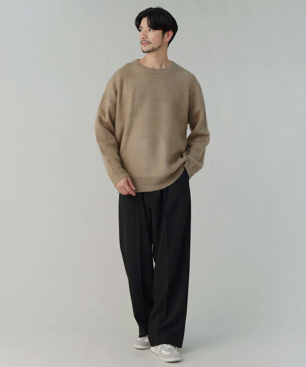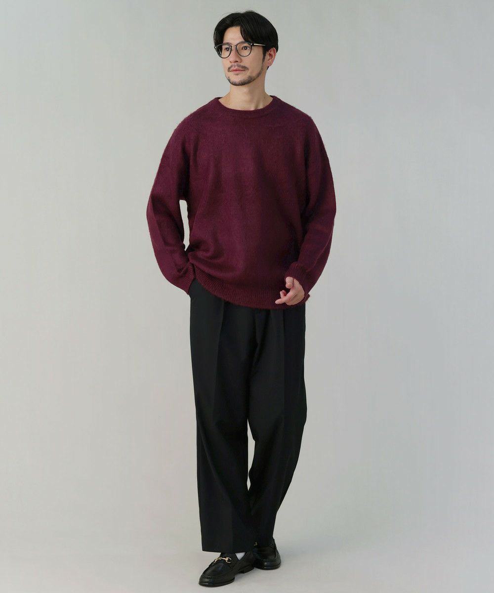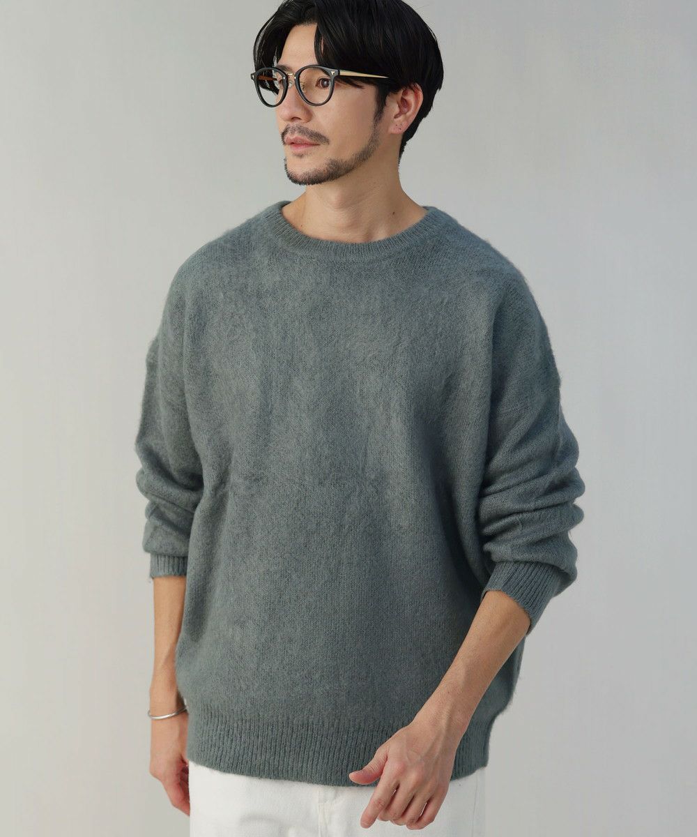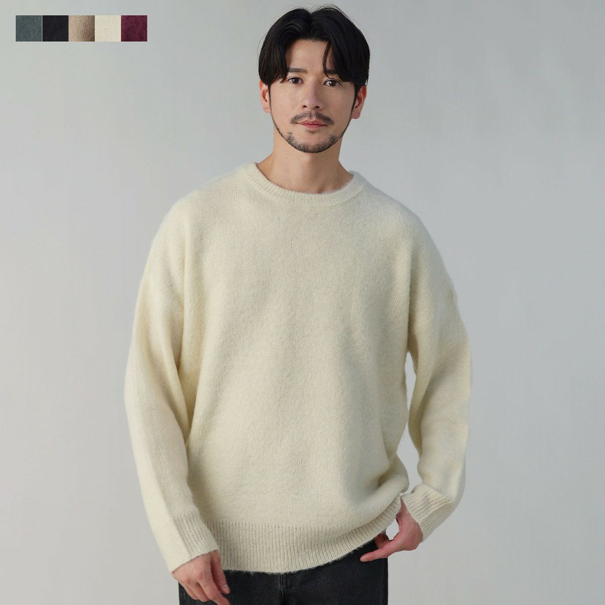 柔らかな質感とほどよいボリュームが魅力の、モヘアタッチクルーネックニット。