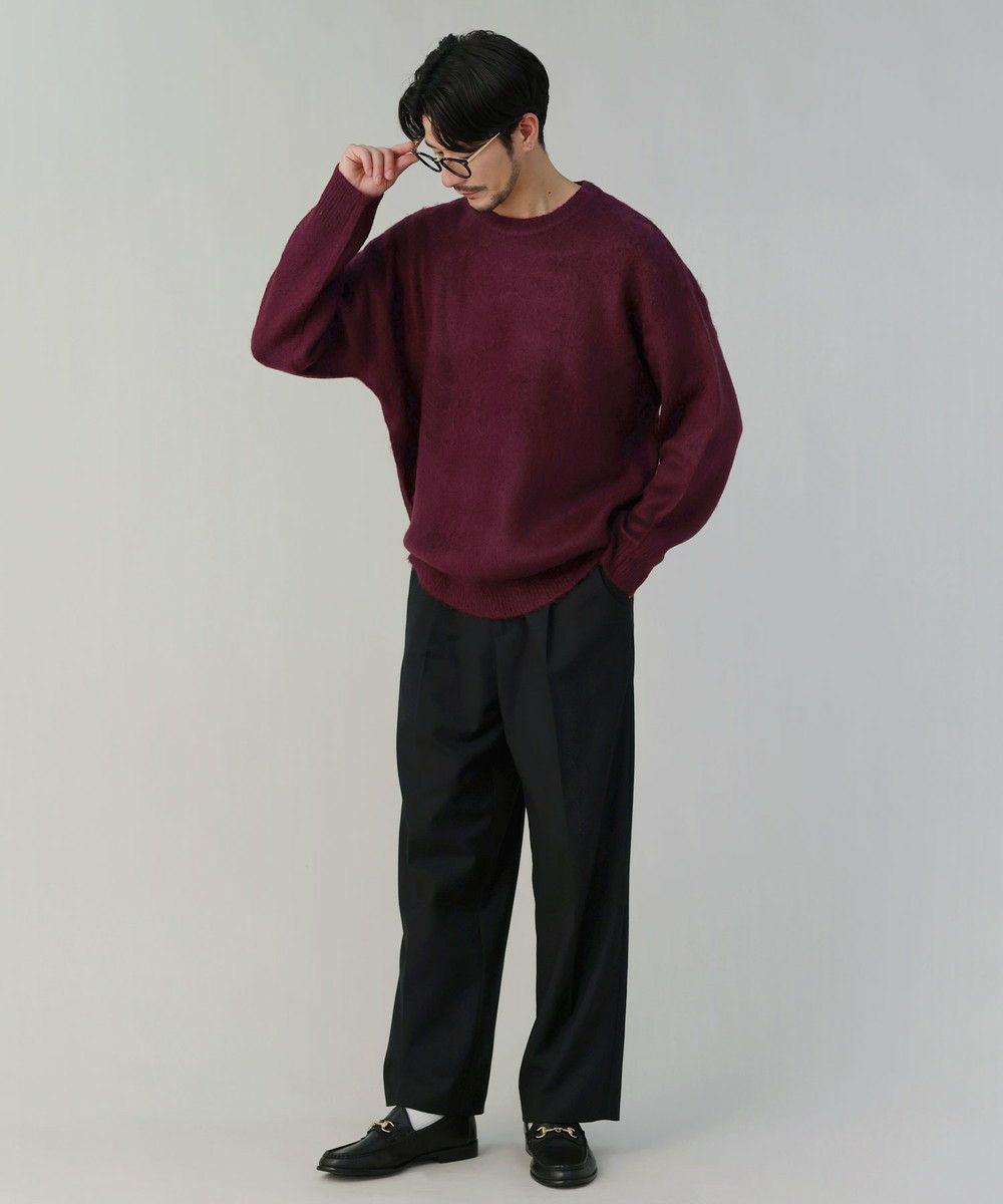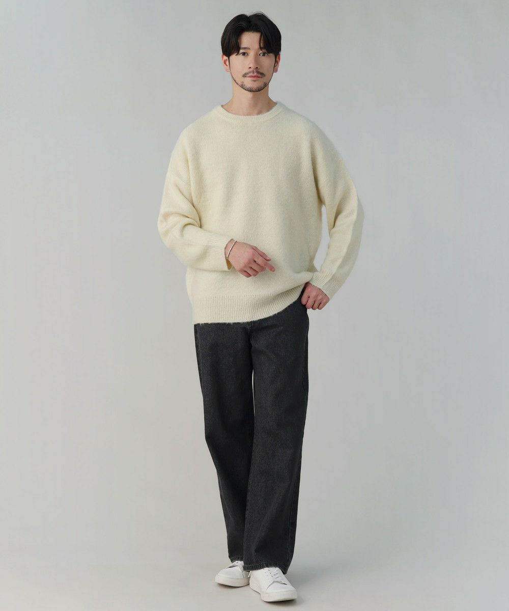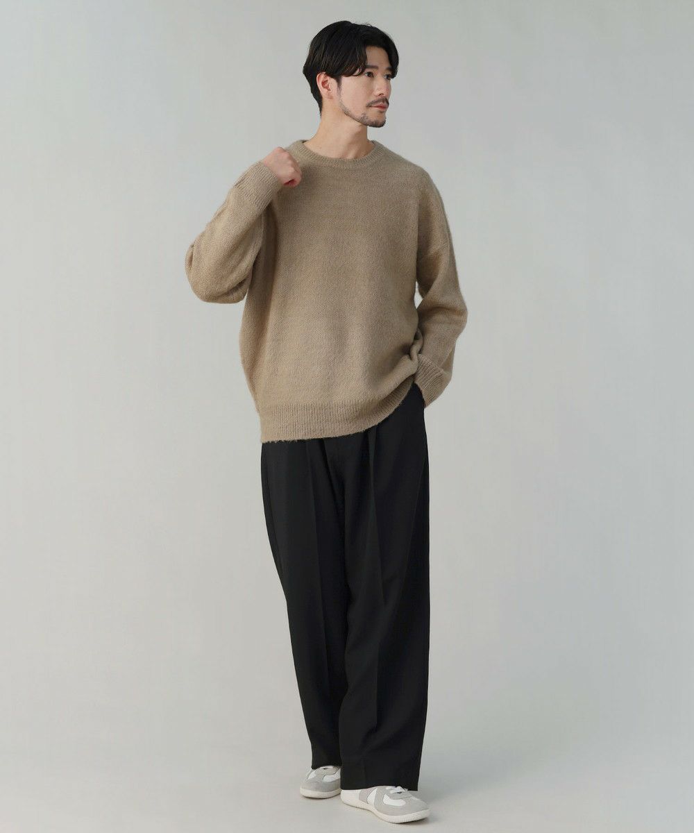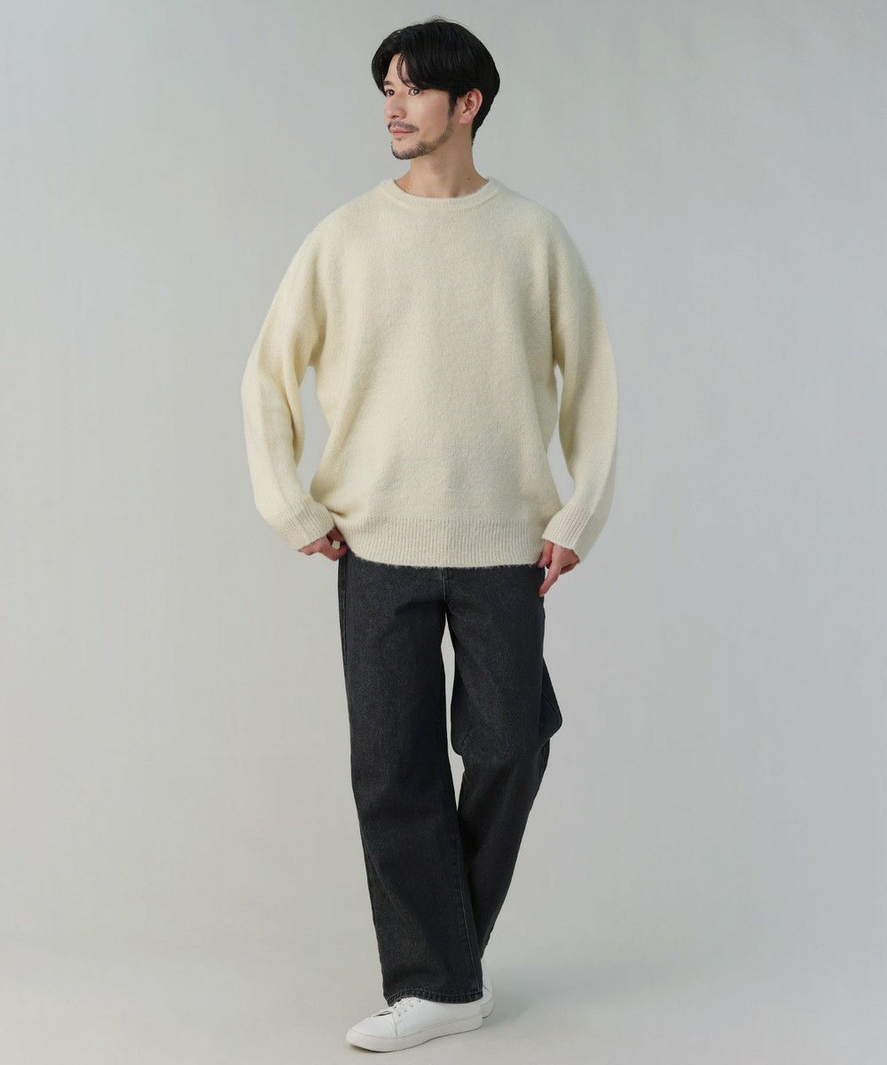 柔らかな質感とほどよいボリュームが魅力の、モヘアタッチクルーネックニット。