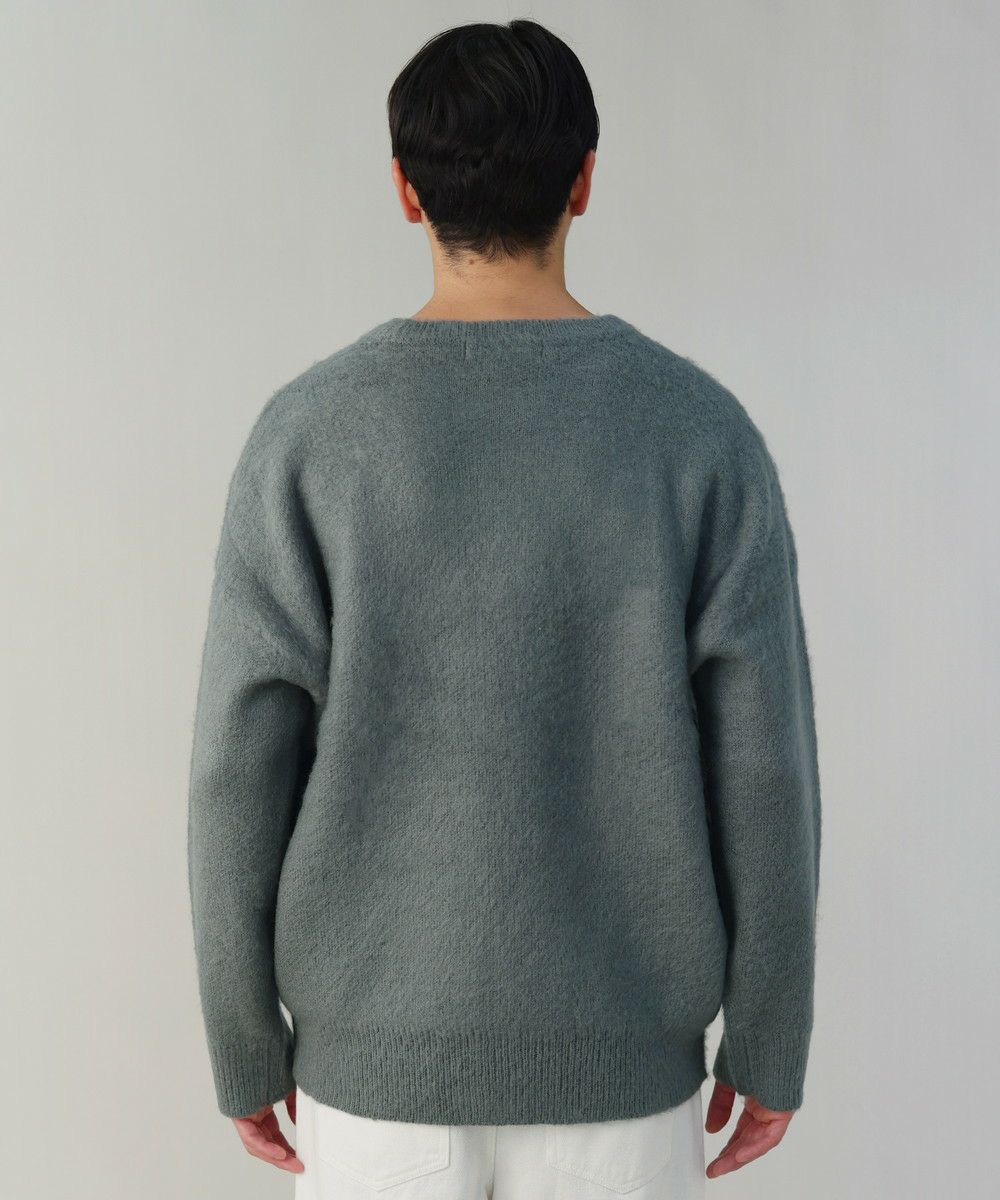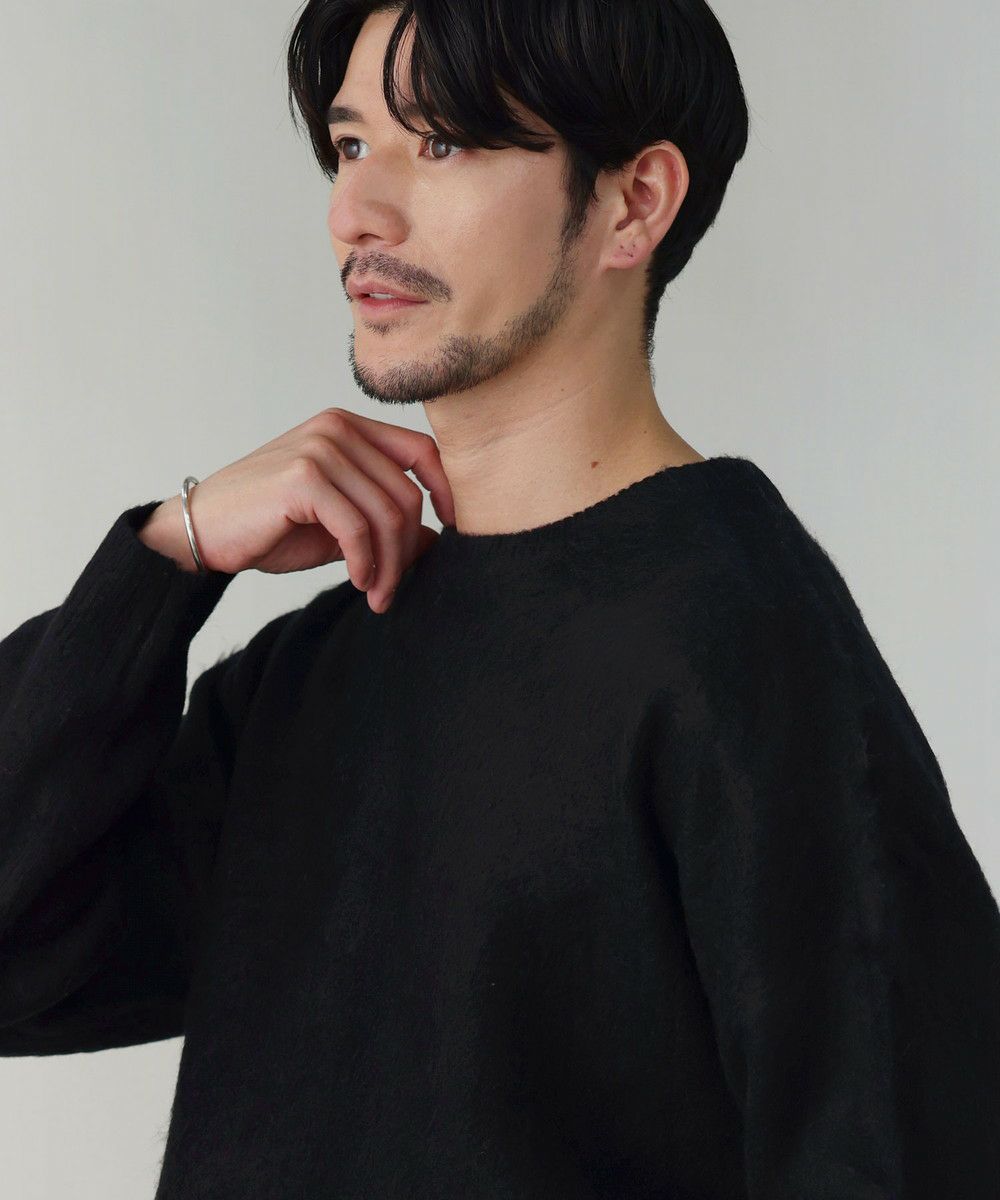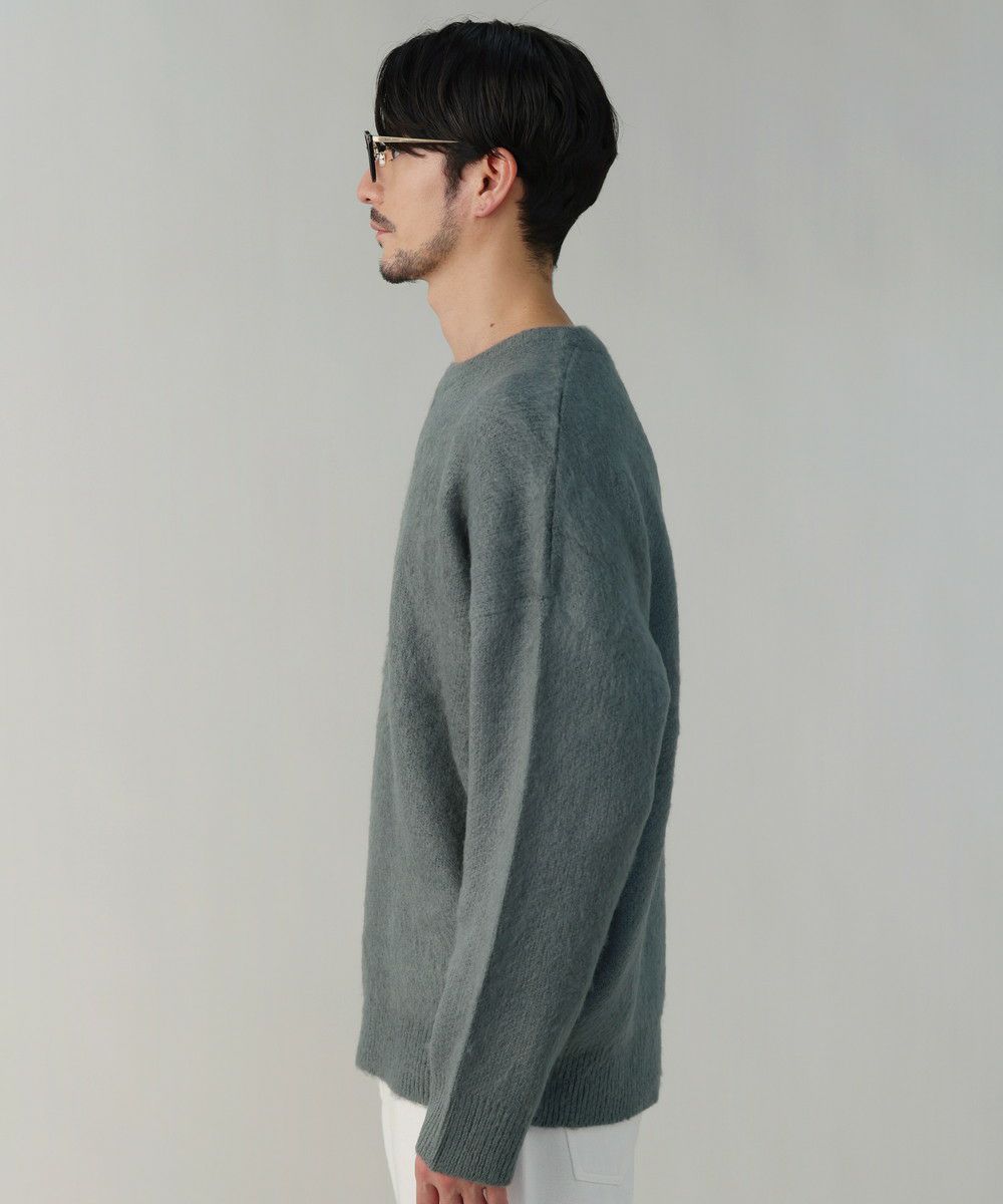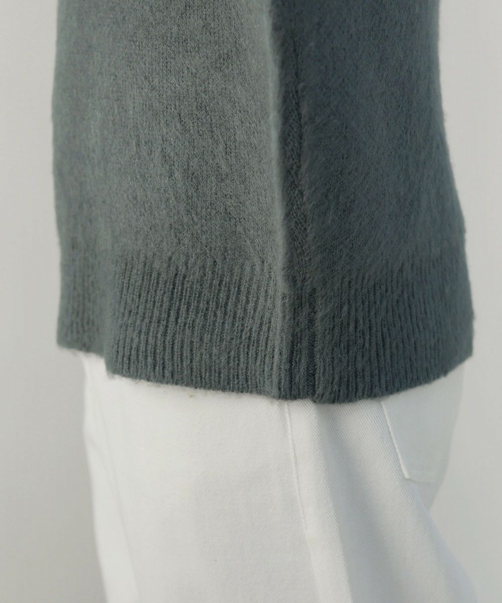 ふんわりとした風合いのモヘアタッチニット素材を使用し、やさしい肌ざわりに仕立てた一枚。モヘア風の質感を再現しながらも実際の素材はアクリル100%なので、チクチク感がなく長時間でも快適にご着用いただけます。
