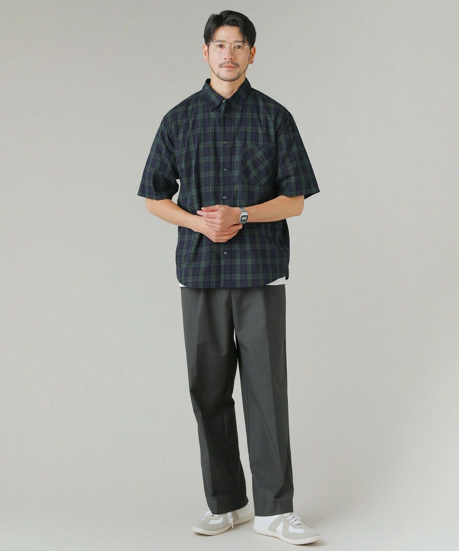 日本製ワンウォッシュボタンダウン半袖テーパードシャツ