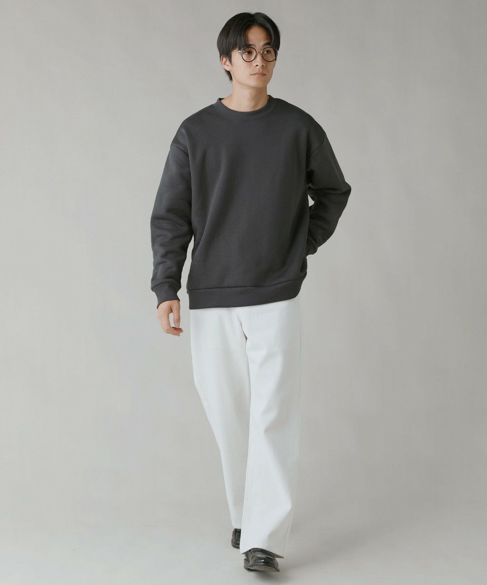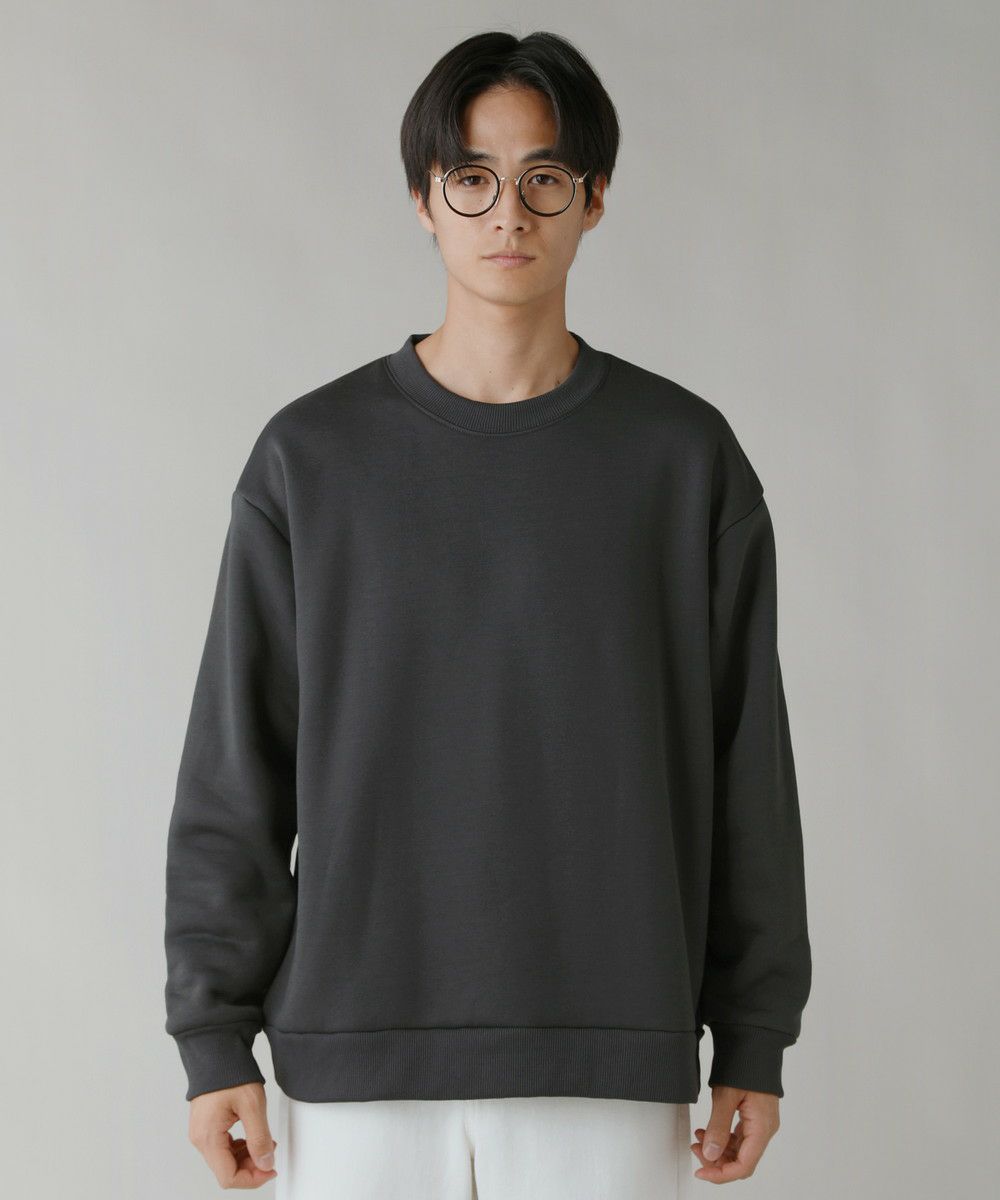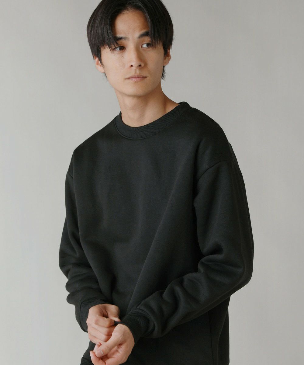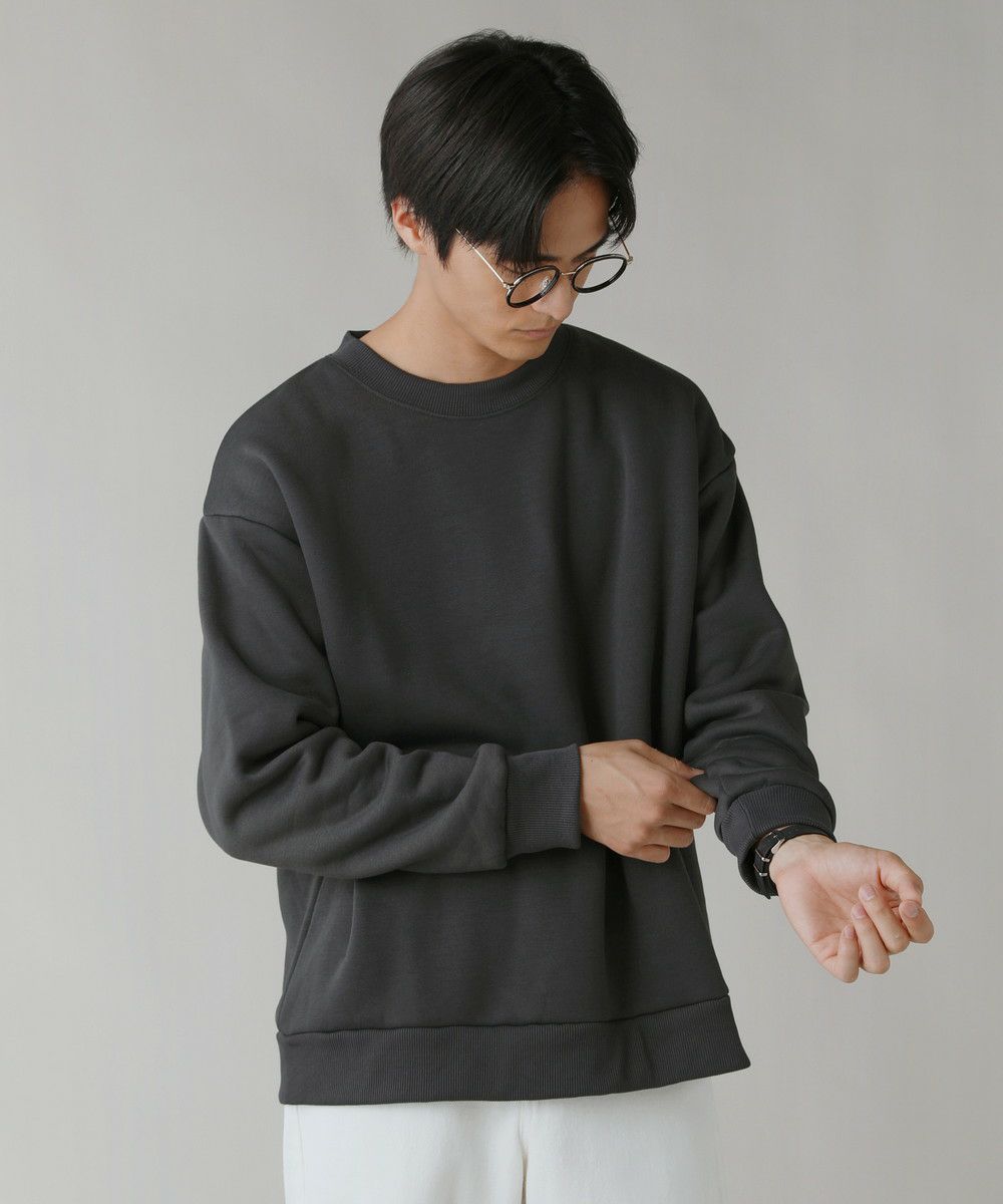 定番のブラックだけでなく、落ち着きのある大人な印象のグレージュやスミクロ、さらに杢調に仕上げたオートミールも含めた4色展開となっております。寒い季節のちょっとしたお出掛け時にサッと着られて重宝する、あったかスウェットプルオーバーです。