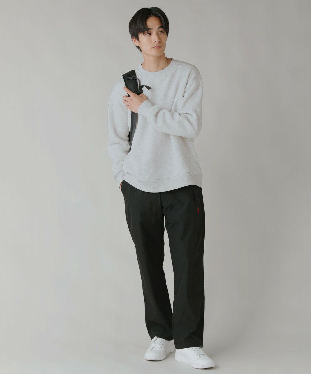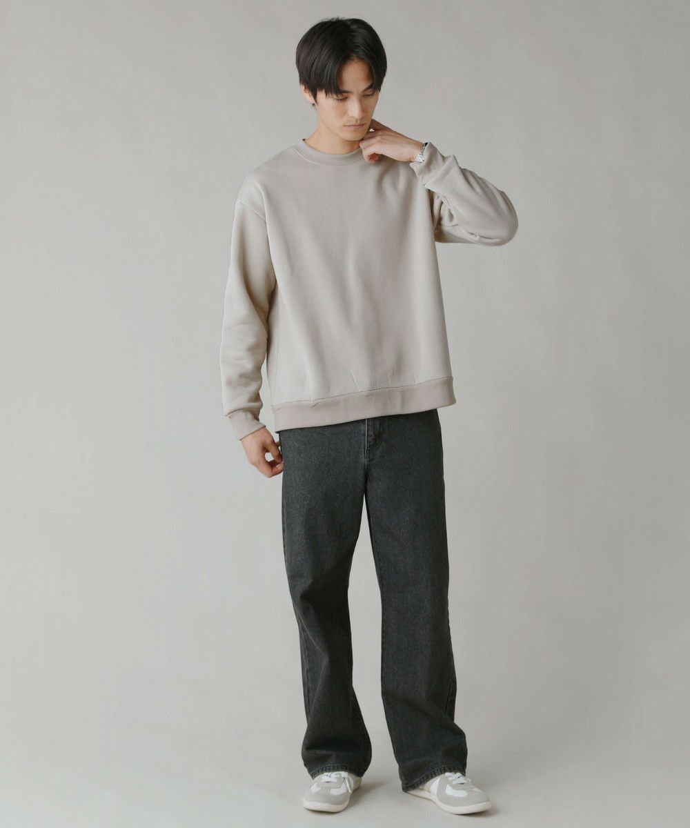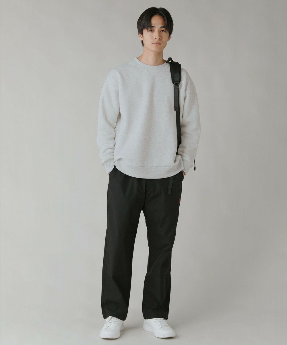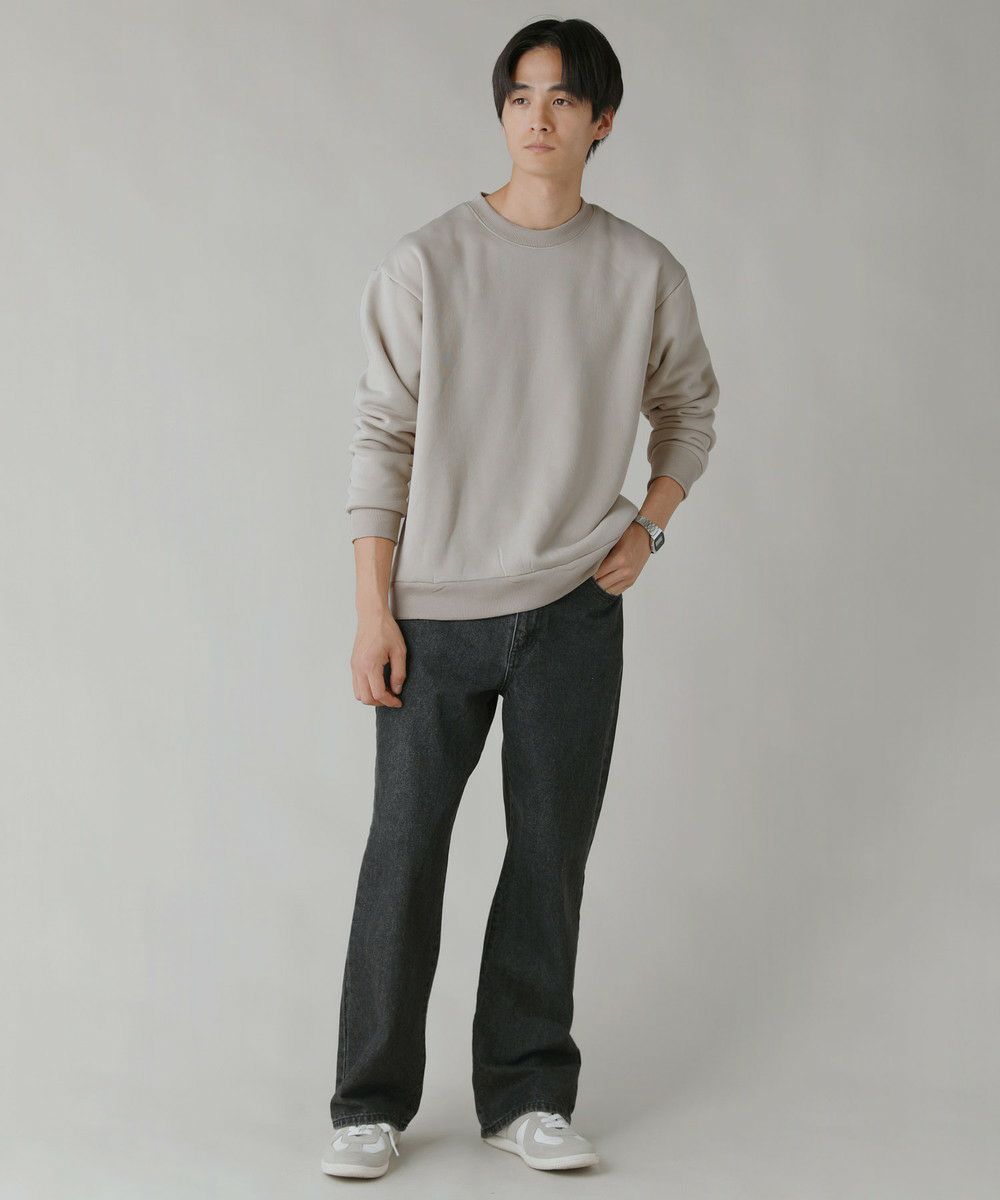 定番のブラックだけでなく、落ち着きのある大人な印象のグレージュやスミクロ、さらに杢調に仕上げたオートミールも含めた4色展開となっております。寒い季節のちょっとしたお出掛け時にサッと着られて重宝する、あったかスウェットプルオーバーです。