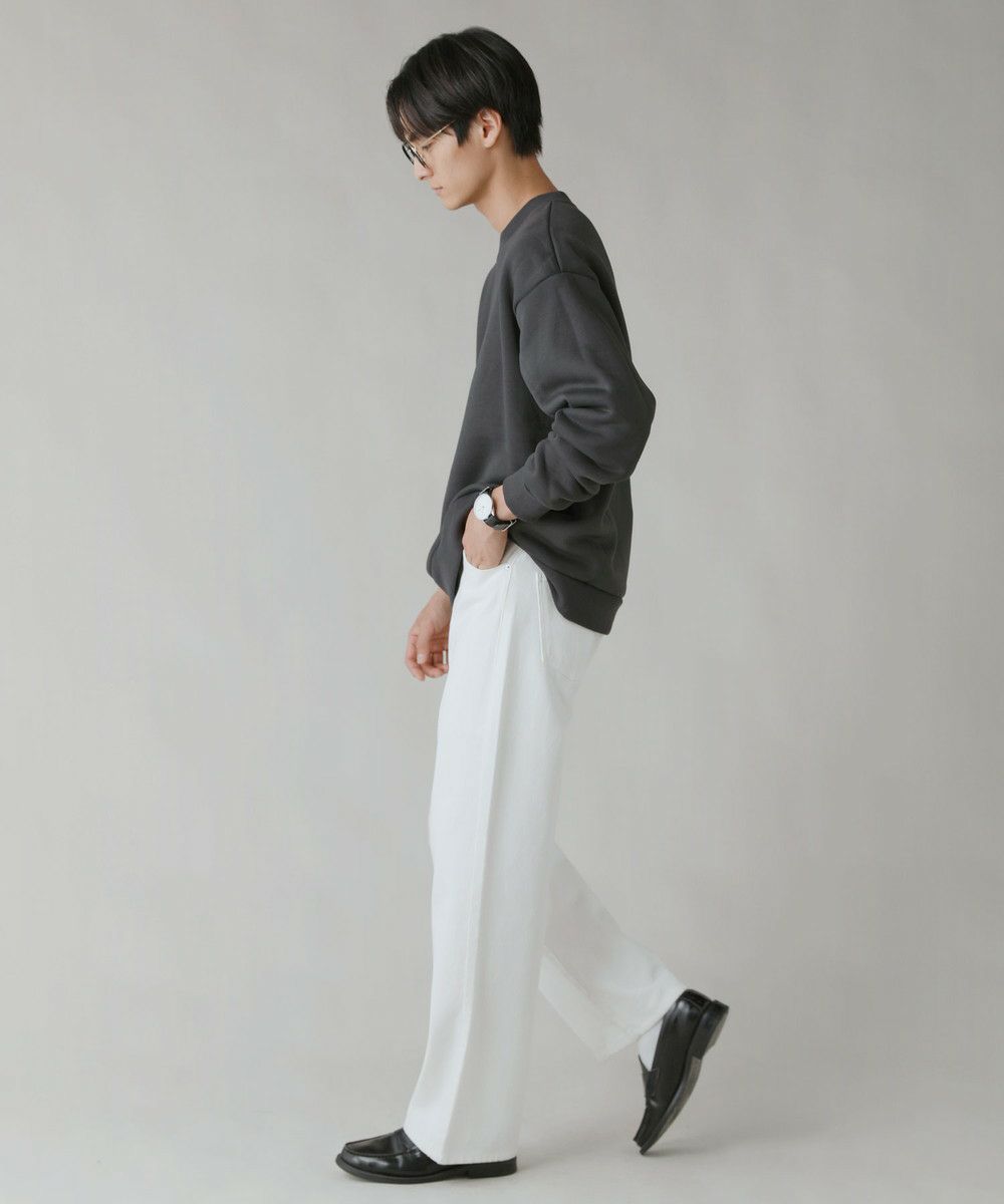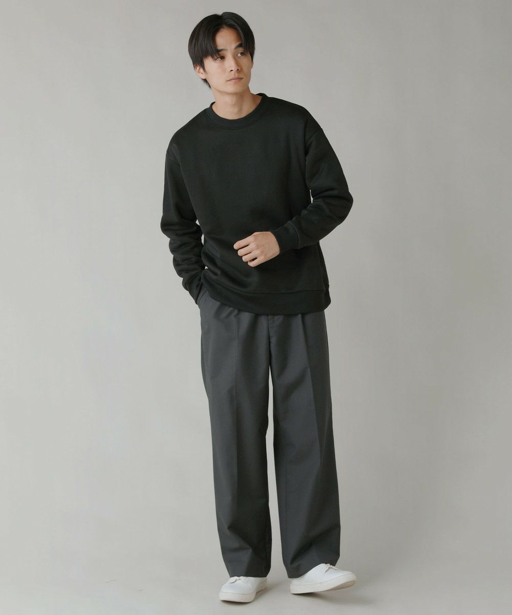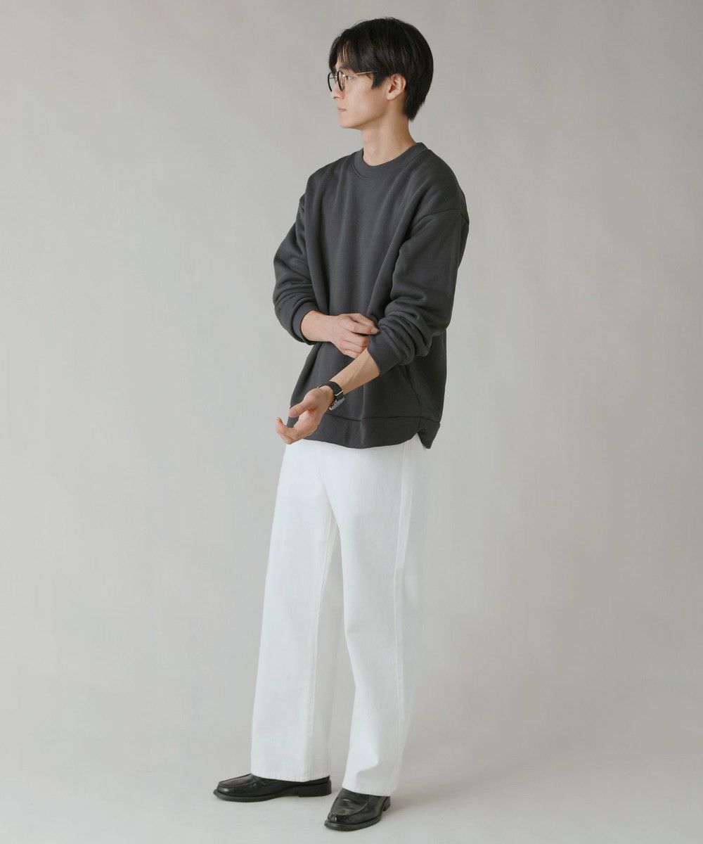 キレイめにもカジュアルにも合わせやすいシンプルなクルーネックデザインとワイドめなシルエットを採用。キレイめな装いに取り入れれば程よく抜け感を演出することができる一着です。