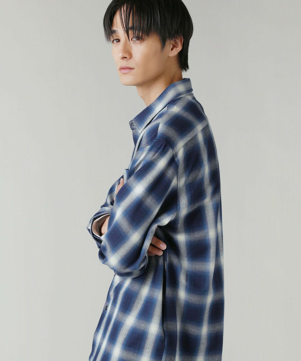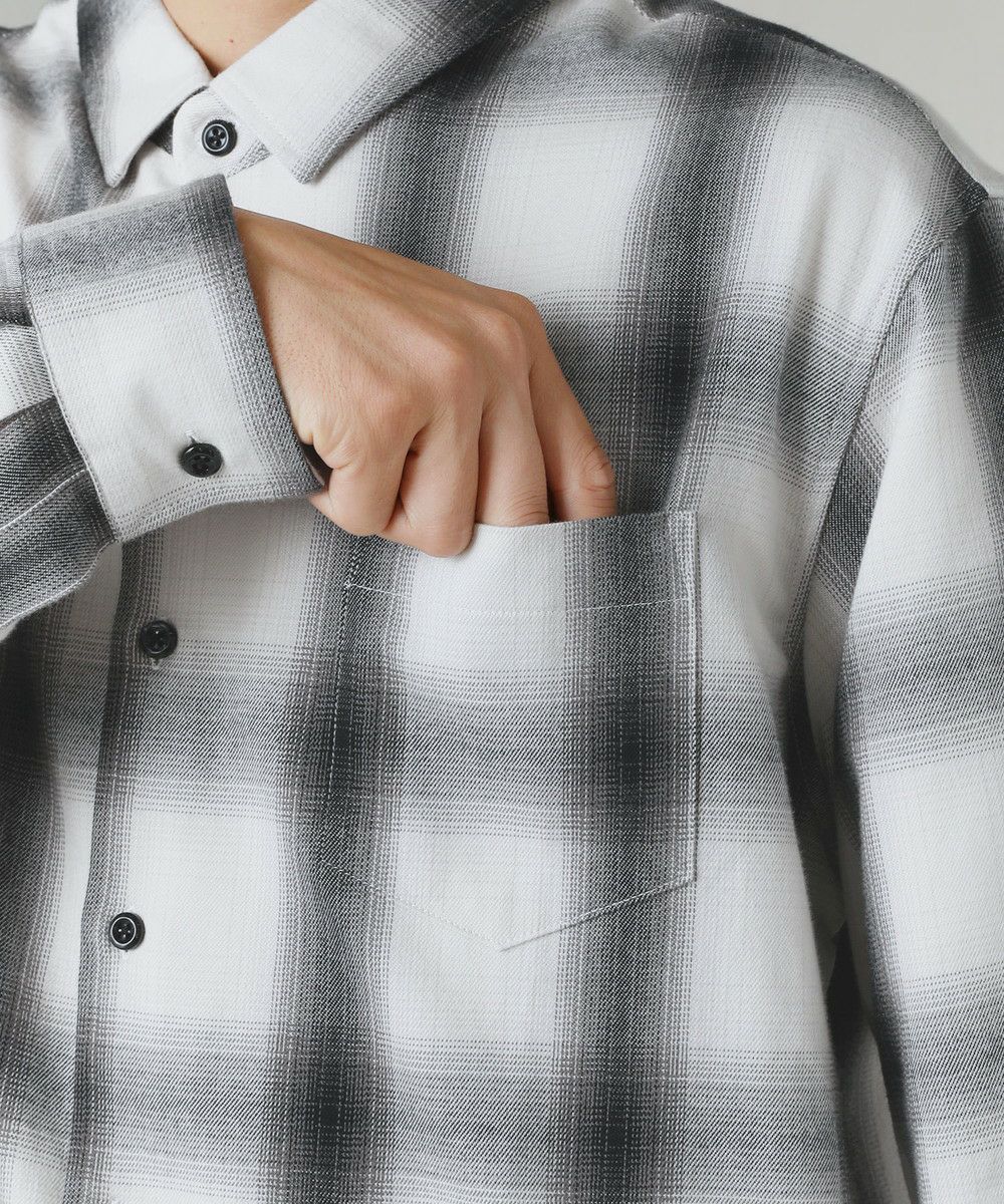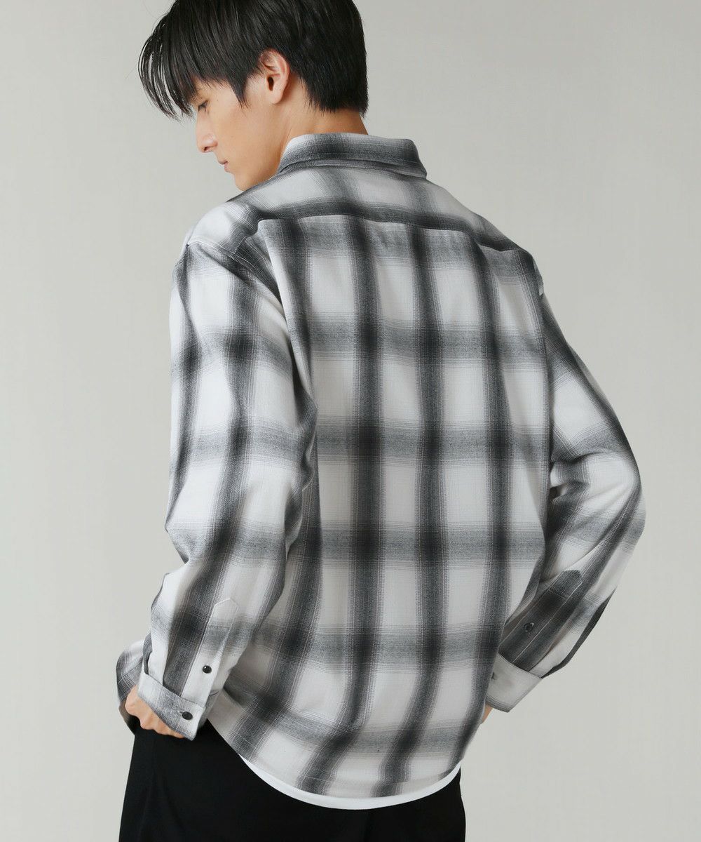 リラクシングシルエットオンブレチェックレギュラーカラー長袖ネルシャツ