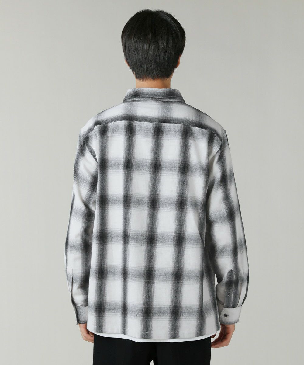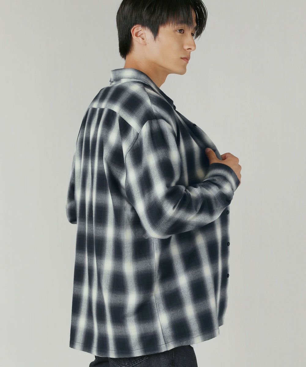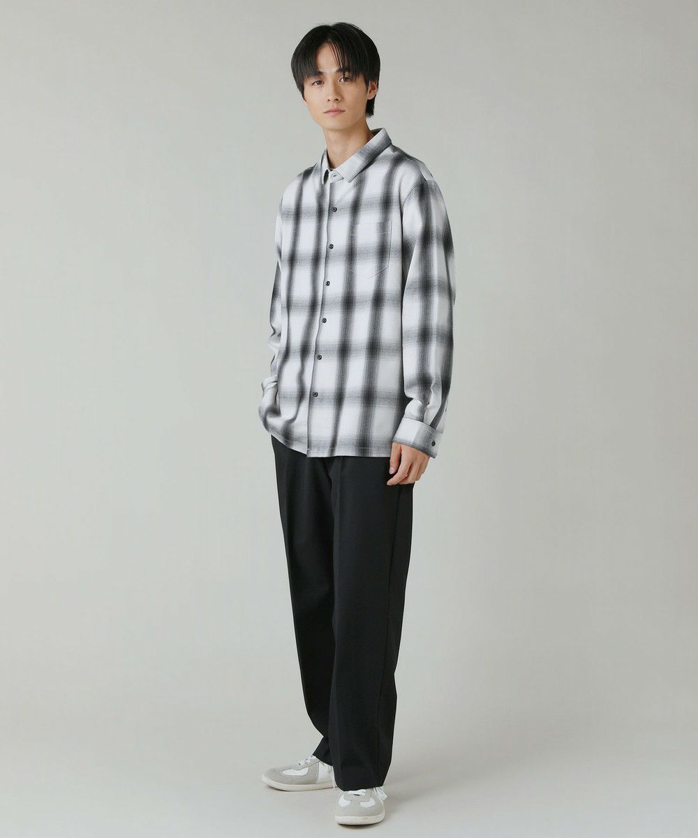 リラクシングシルエットオンブレチェックレギュラーカラー長袖ネルシャツ