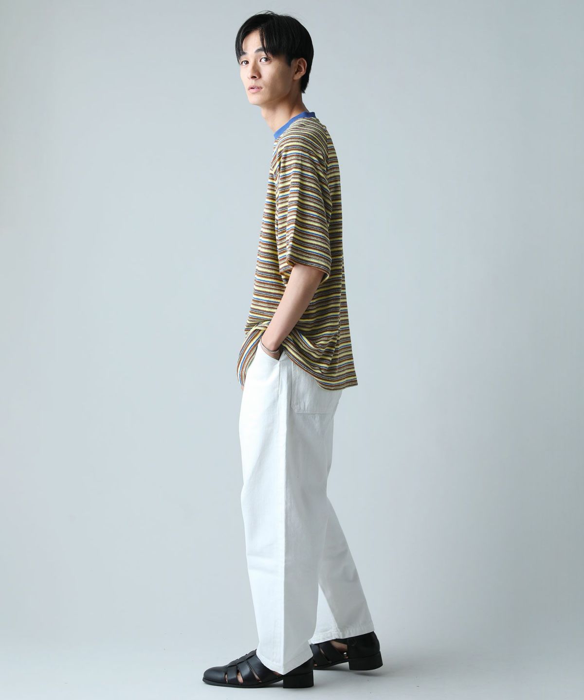パッと目を引くマルチボーダー柄は各カラーごとに配色パターンを変えており、それぞれで個性的な印象をプラス。それでいてボーダーの幅を細めに設定しているので主張が激しくなりすぎず、ミニマルでこなれ感のあるコーディネートにまとまります。