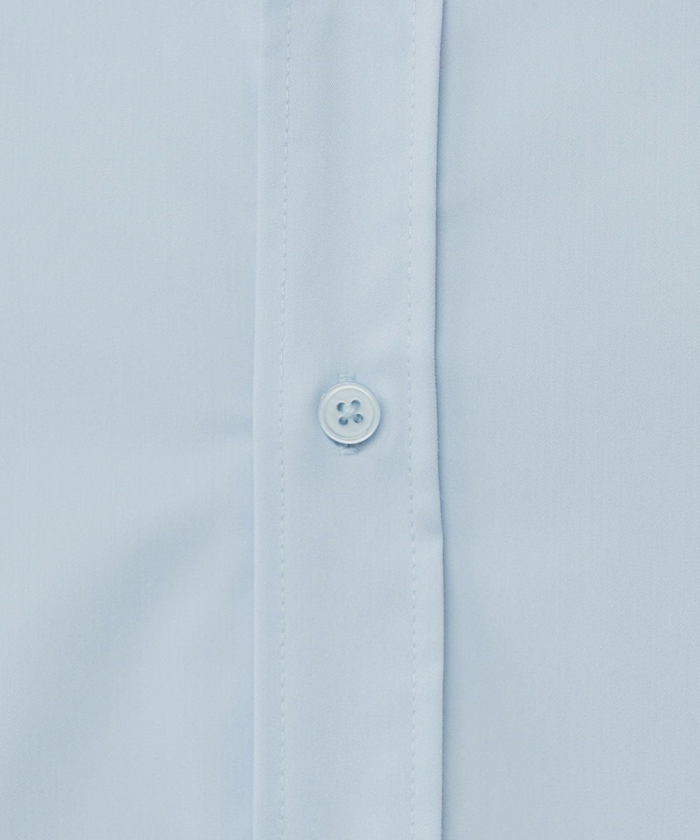 生地には品の良いキレイめな印象を与えるブロード生地を採用しました。きめ細かく滑らかな質感で薄手ながらもしっかりハリがあるのが特長です。ポリエステルとレーヨンを用いたTR素材なので着用時にしわができにくく、清潔感のあるキレイめな印象をキープしてくれます。伸縮性があるので着心地が良く、吸汗速乾機能付きのためデイリーユースにおすすめです。