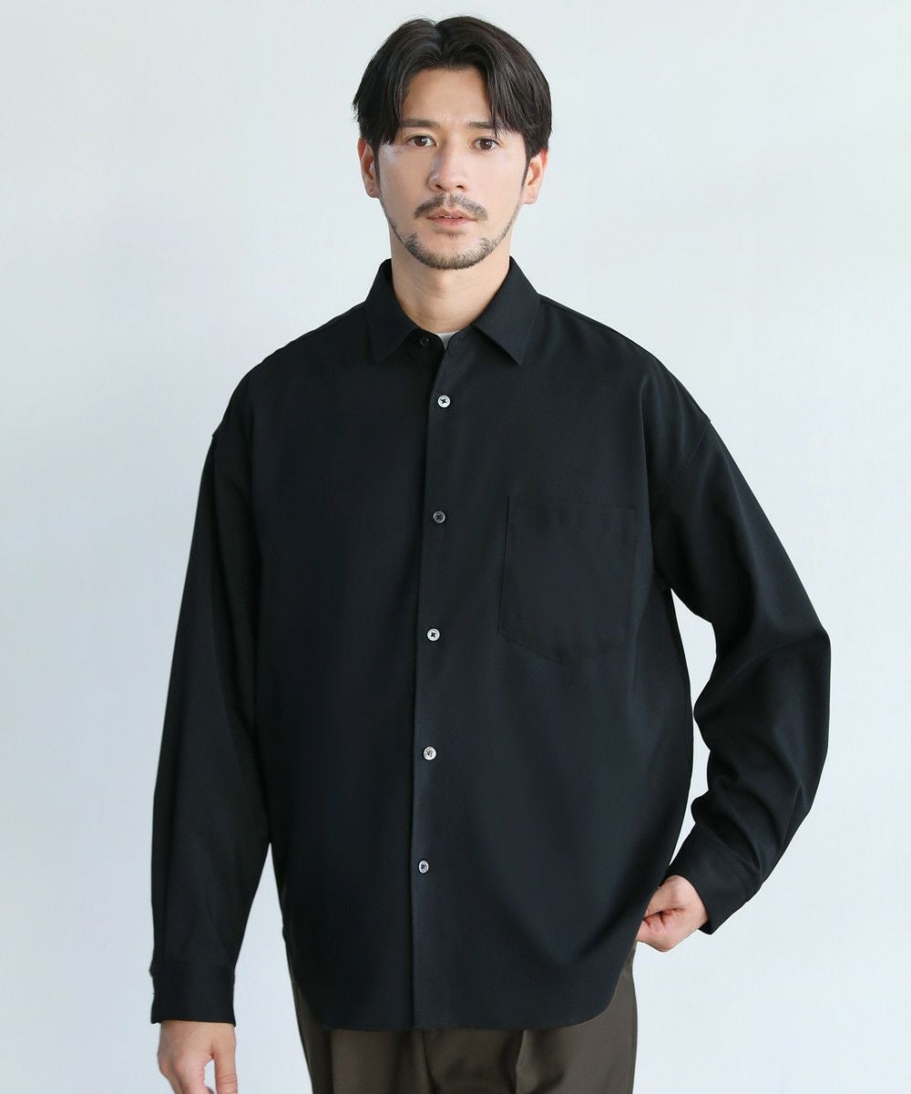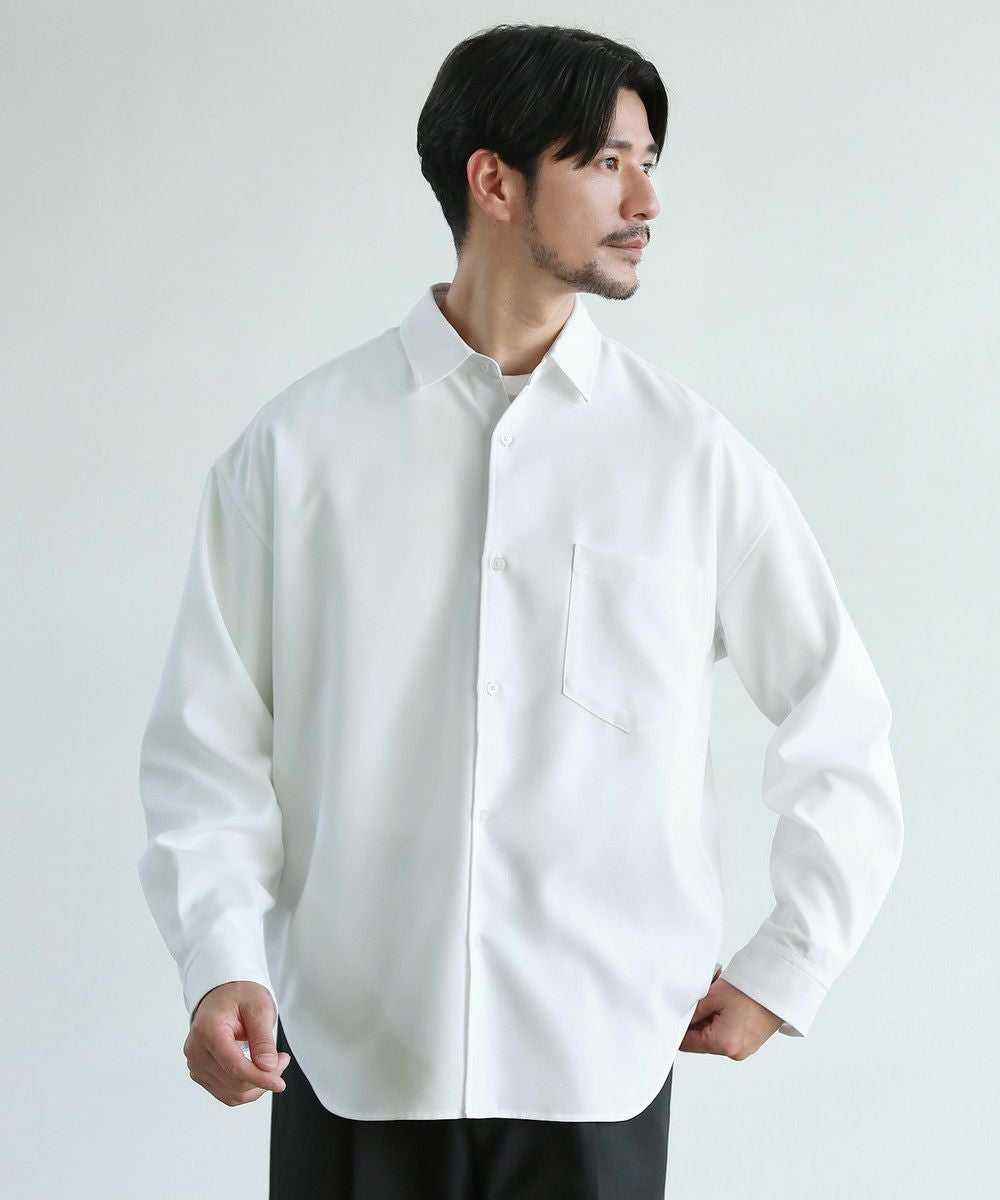 洗練された生地感とベーシックなデザインでジャンルレスに着回せます。程よくゆとりのあるシルエットのおかげで、キレイめコーデはもちろんカジュアルな装いにも合わせられる万能シャツです。清潔感が続く防シワ機能付き生地なのでオフィスカジュアルにも適しており、オンオフ問わず重宝する一着です。