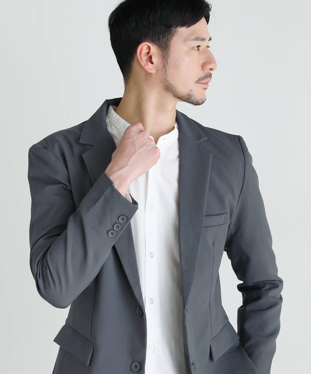 ベーシックなサイジングとディテールでイメージ通りのキレイめスタイルを作り出してくれる一着です。フロントは2ボタンデザイン、裾後ろはセンターベントを入れております。肩の形をキレイに見せるため、わずかに肩パッドも入れました。オフィスカジュアルな着こなしにもご利用いただけるオンオフ兼用のテーラードジャケットです。